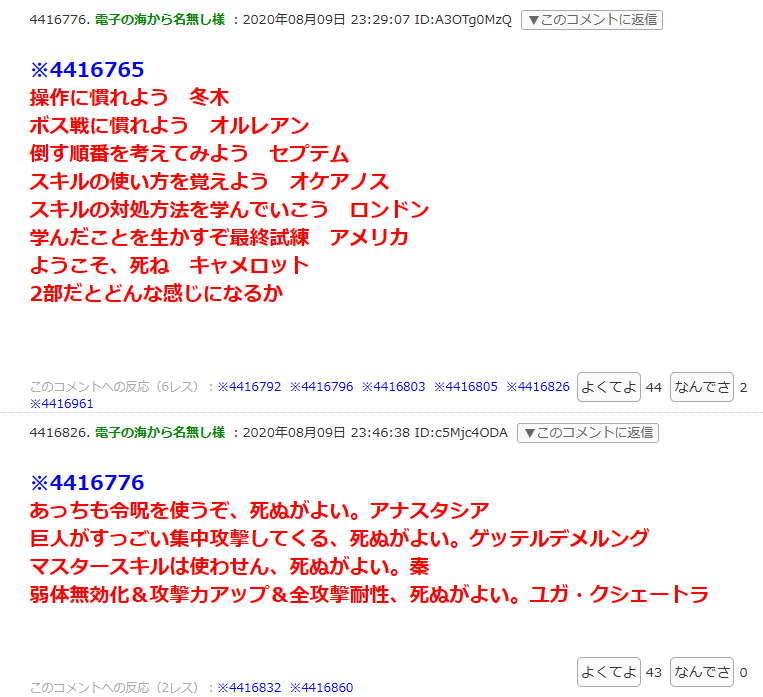 R18関連話題、よくてよ無しのガチャ結果、実装から二週間以内のシナリオ及び開催期間中のイベント内容、進行度依存の報酬、最終再臨や霊衣解放の画像や話題は専用スレにてお願いします。