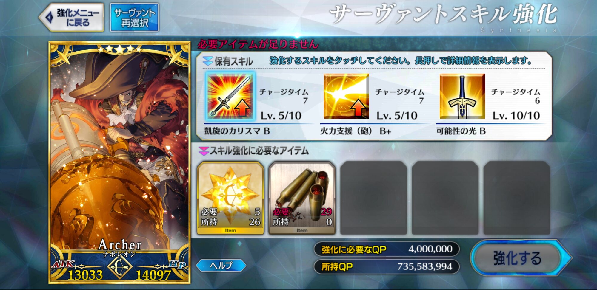 (良かった……! 紛うことなき快男児ナポレオン、あのラストは私もしびれました。貴方のカルデア事情などもあるかと思いますが選択肢の一つとして上げてくださっただけでもこれ幸い)ゲージが破られたら復活させれば良い。
