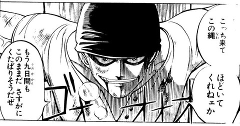 思えば初登場からして9日間も絶食状態で磔状態のまま放置されてたのに、泥だらけおにぎり食っただけで普通に海兵たちとやり合ってるし>>64