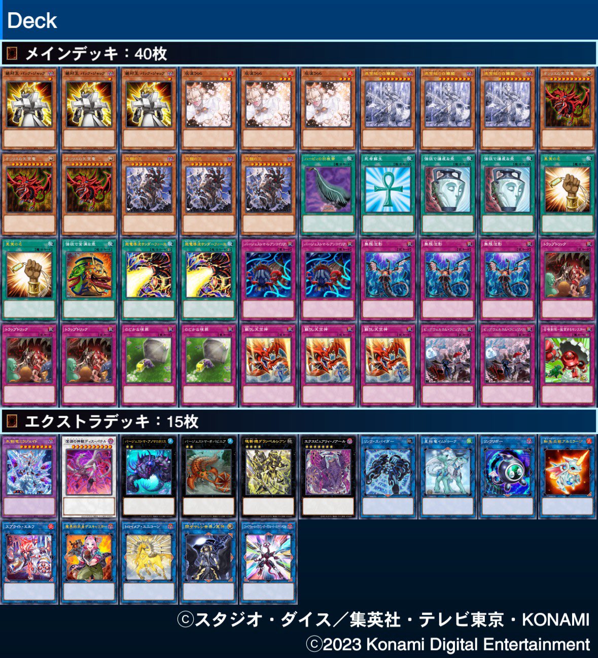 ちなみにデッキレシピはこんな感じ(前にここで晒した時との変更点は、レッドリブートが抜けて誘発が増えてる)