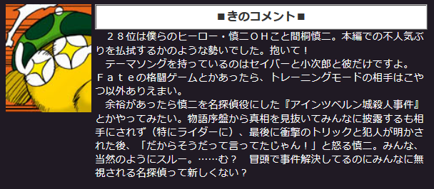 あからさまに怪しい言峰が犯人なら士郎が探偵でも事件は簡単に解決する、そんなこと、もっと早く気付けば良かった…>>909