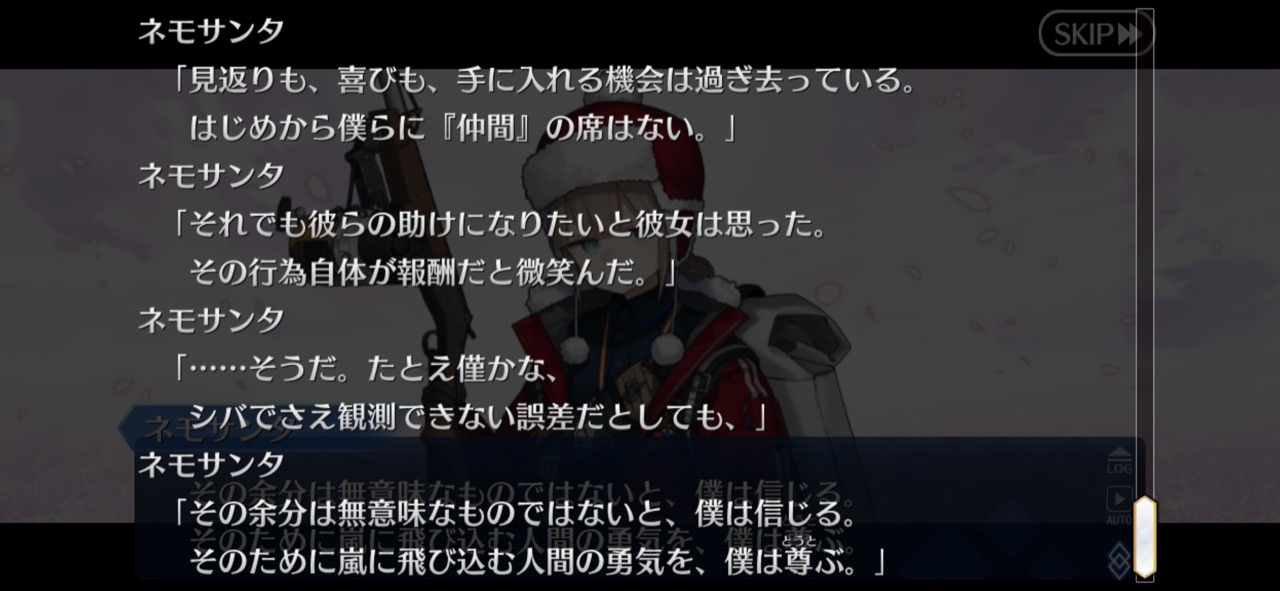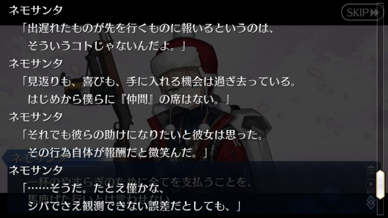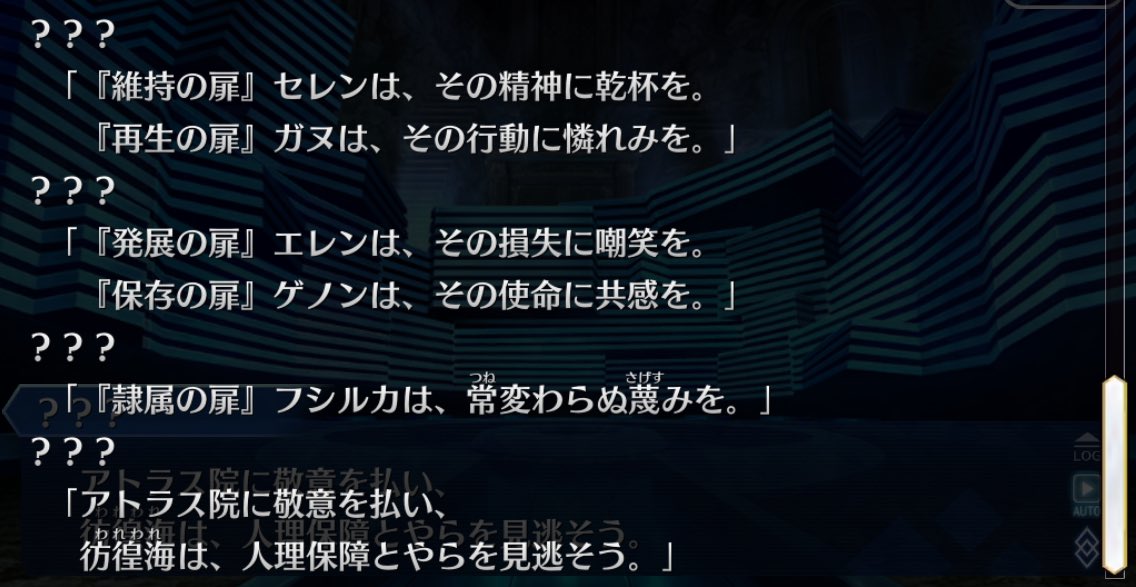 他のイベントにも言える事だけど結局キャラの掘り下げにもシナリオの設定的にもやっぱりイベントシナリオは誰でも読めるくらいの仕様はあった方が良いと思うねえカルデアスが認めてたって霊長類の一員ってなんなんだよ。言葉通りなら人間のことだよね