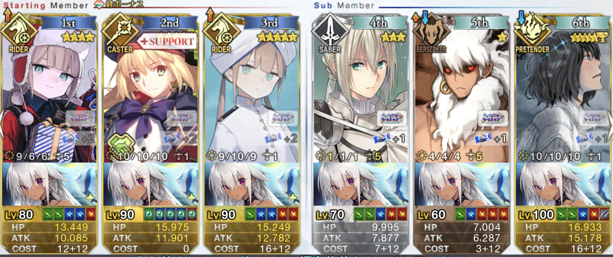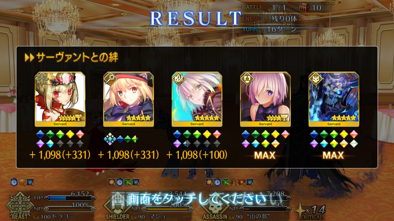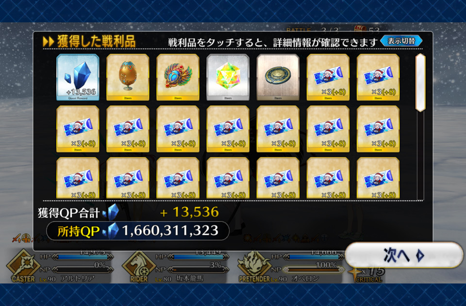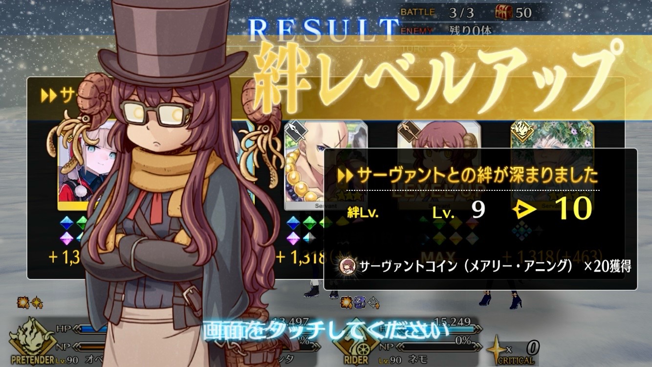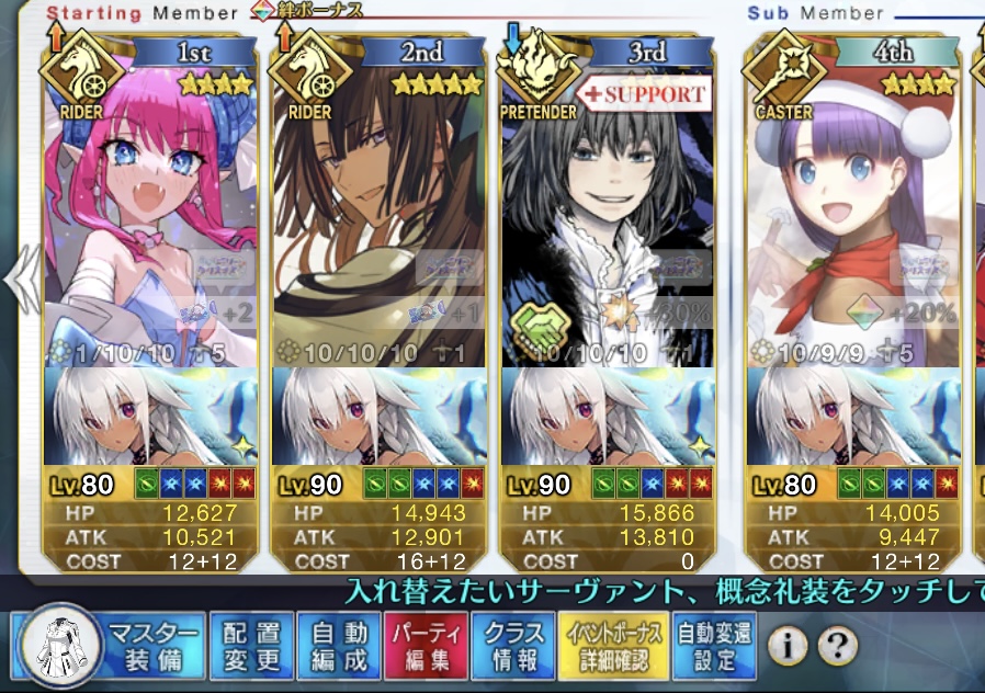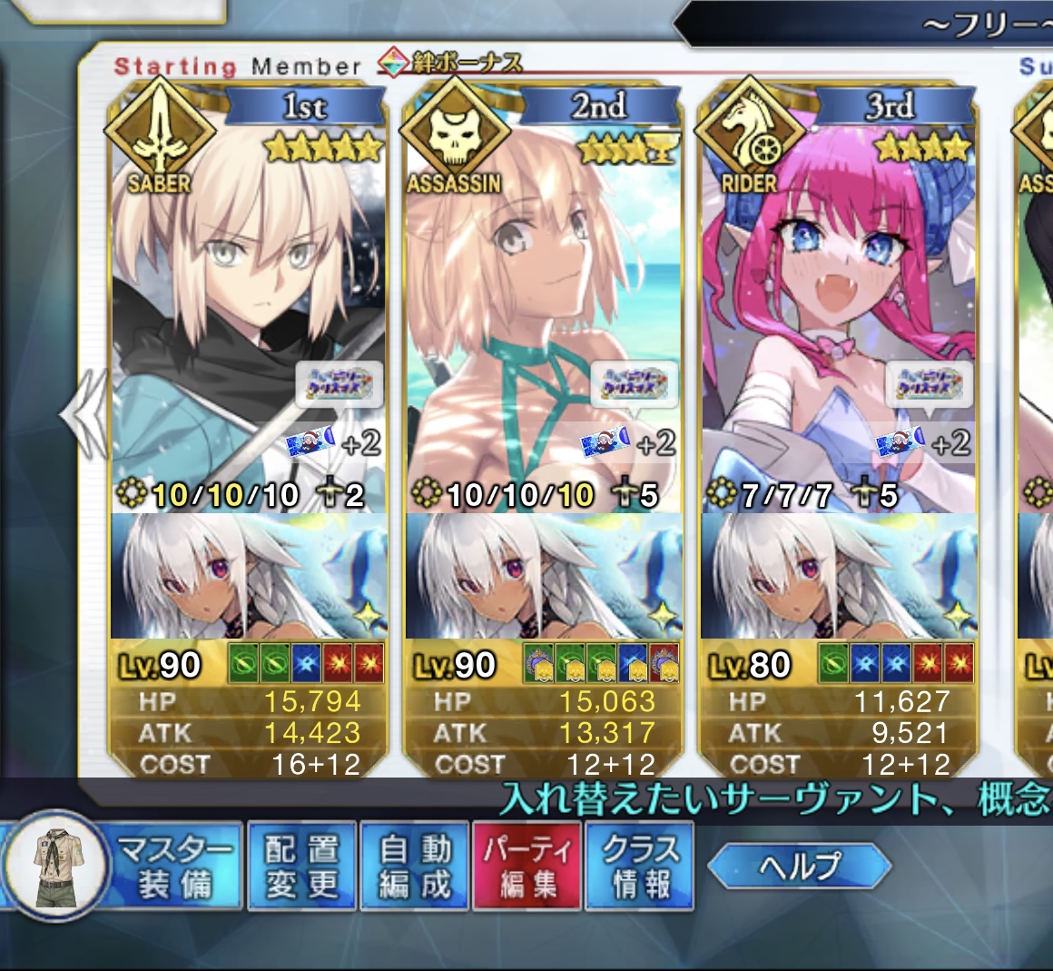 ソートをHP順にするとだいたい弾けるからオススメそろそろネモサンタが絆10になるマスターも多くなりそう
