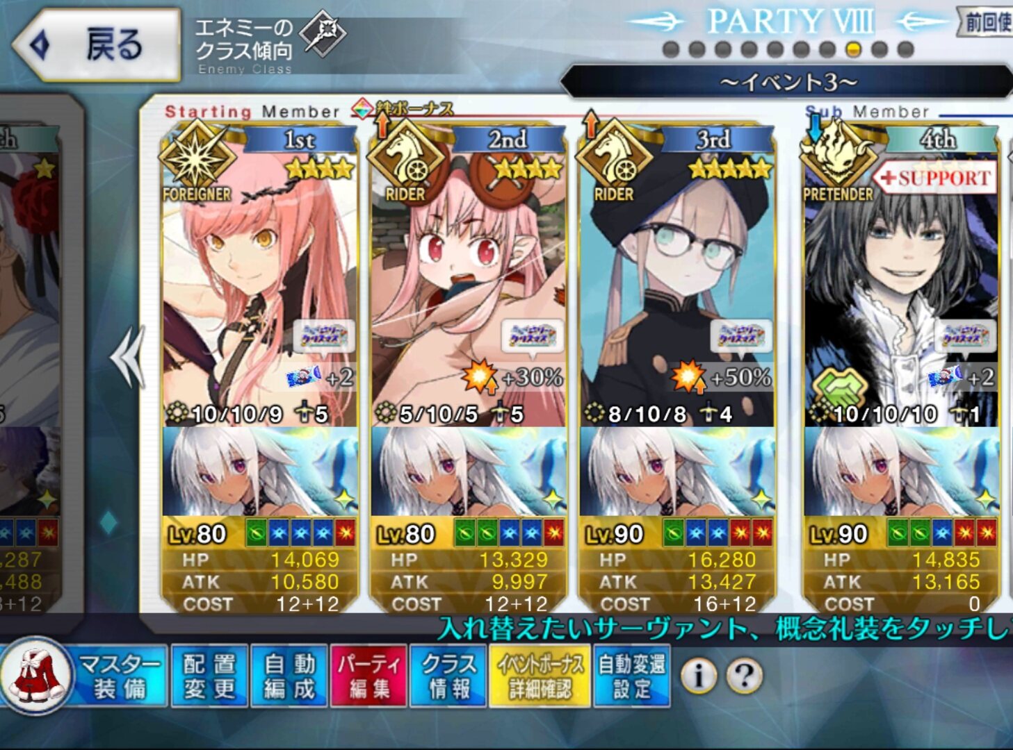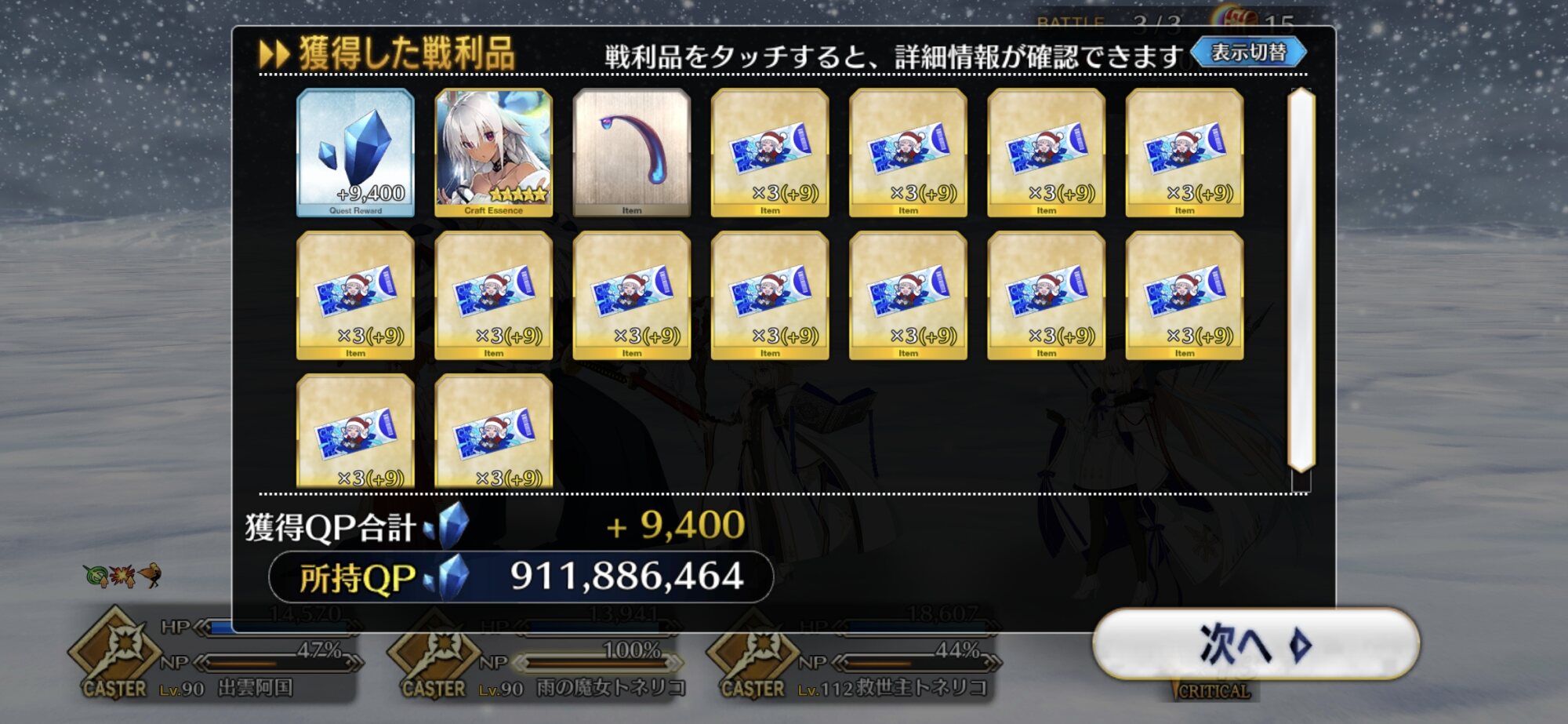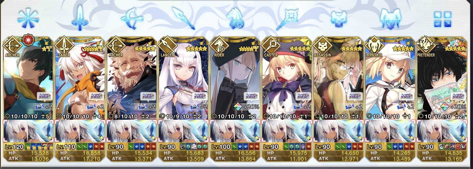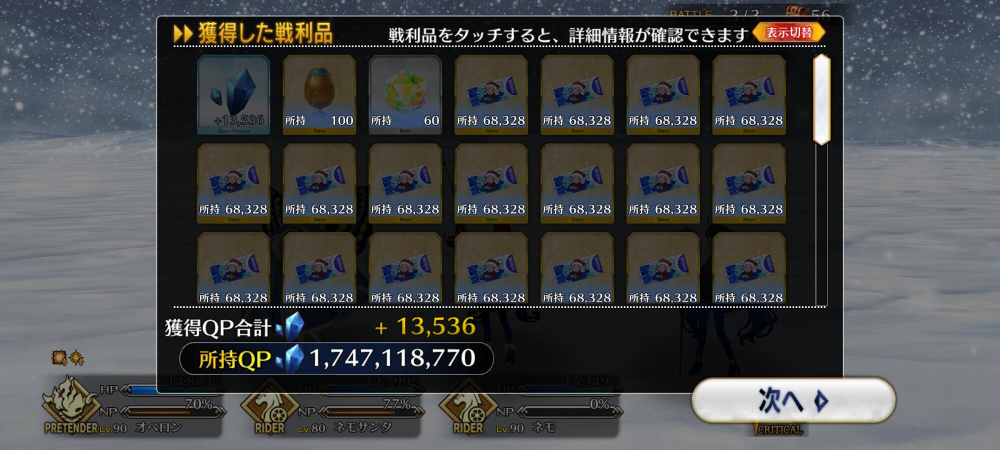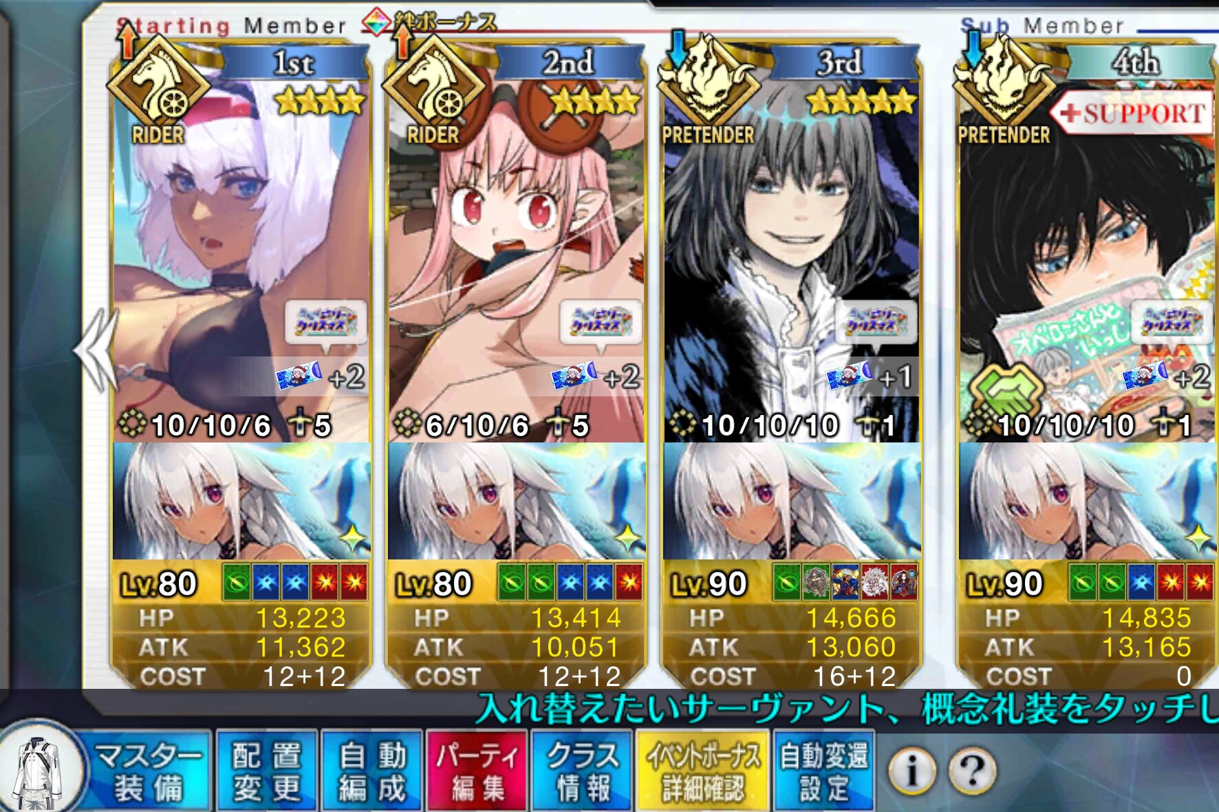 ソートをHP順にするとだいたい弾けるからオススメそろそろネモサンタが絆10になるマスターも多くなりそう