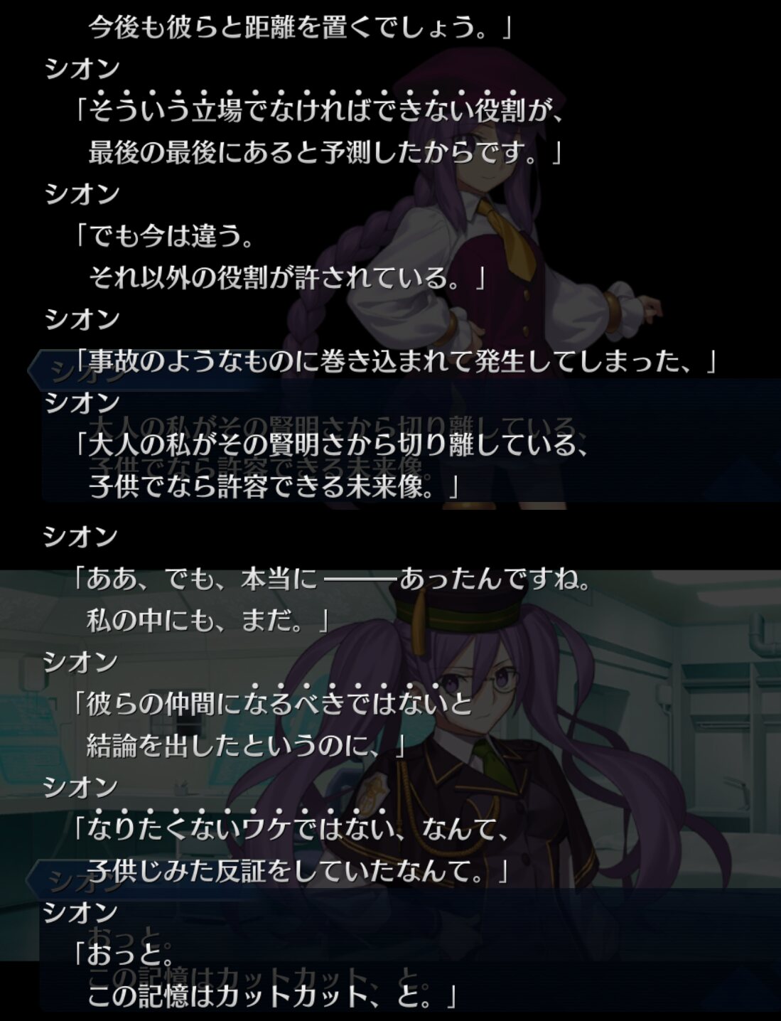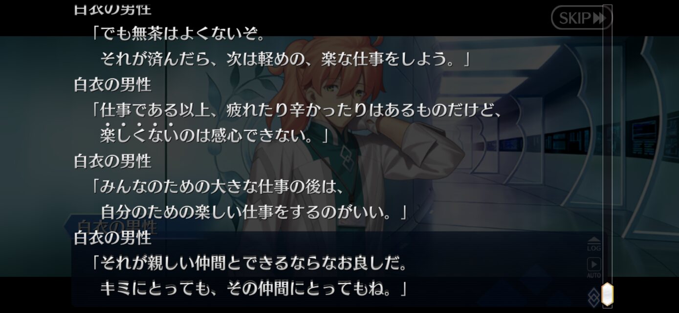派閥争いは嫌いなのに異聞帯との生存戦争に巻き込まれるとか何気にかなりしんどいな君…マーリンとのやりとりでシオンさぁ…ってなってた所で白衣の男性を出されて情緒は荼毘に付したよ
