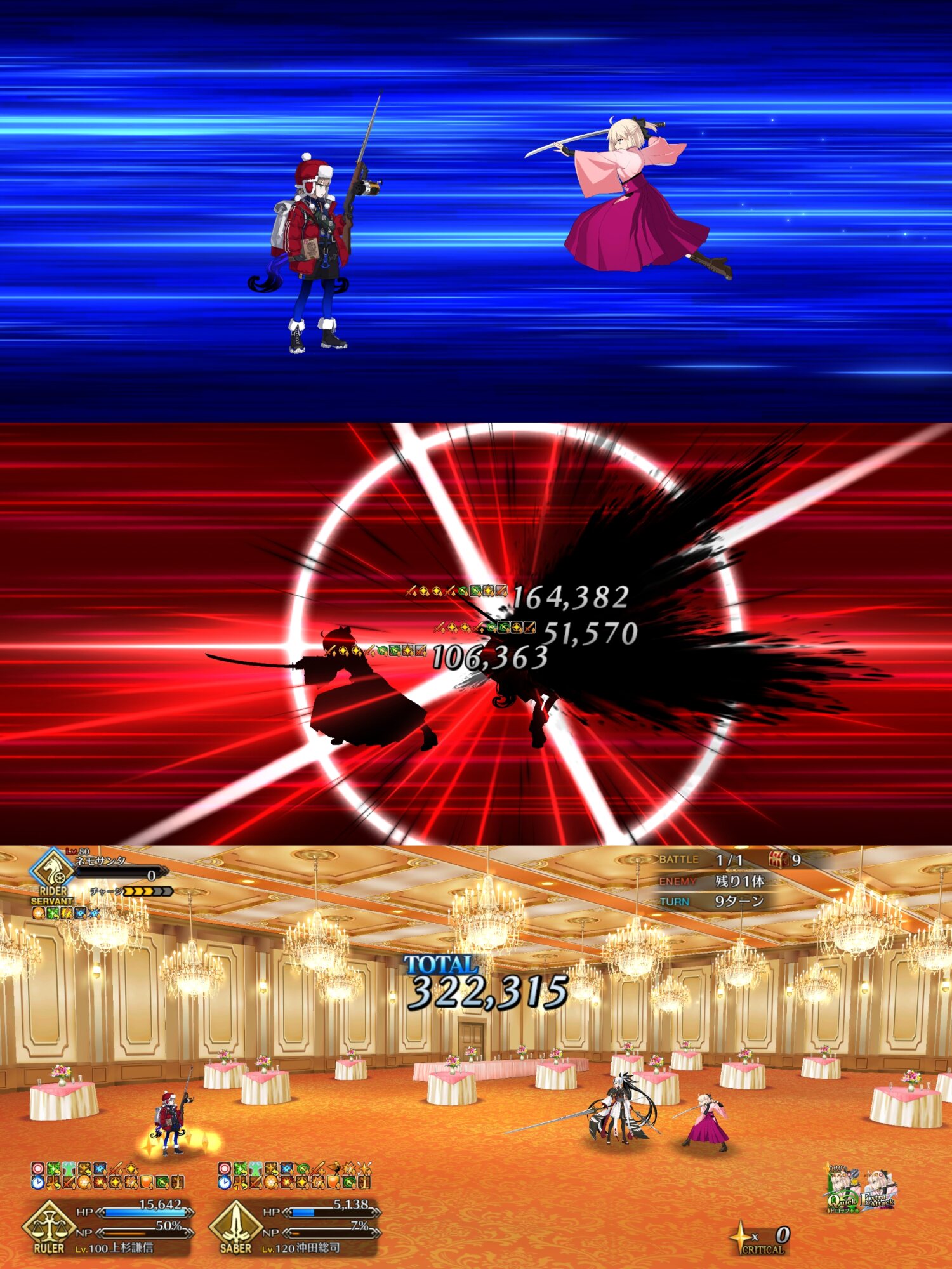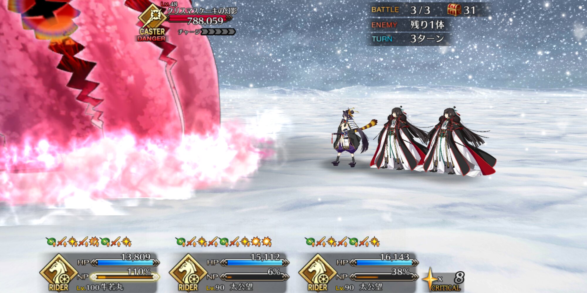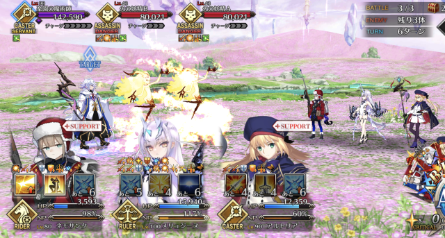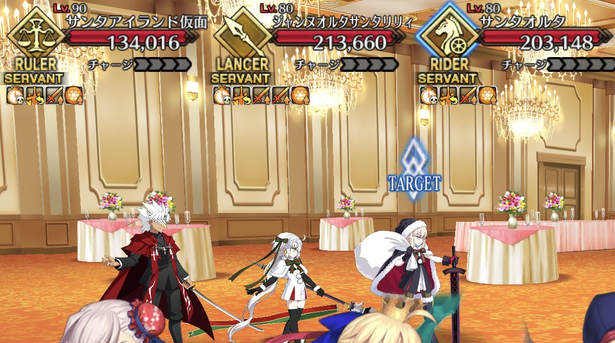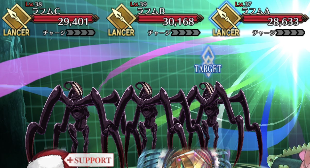 サンタケツ姐さんが現れるまではモルガンで一掃して(天草ァはクリ殴りを絡めてすぐ撃破)、現れたらバサトリアで1体ずつ処理してた。