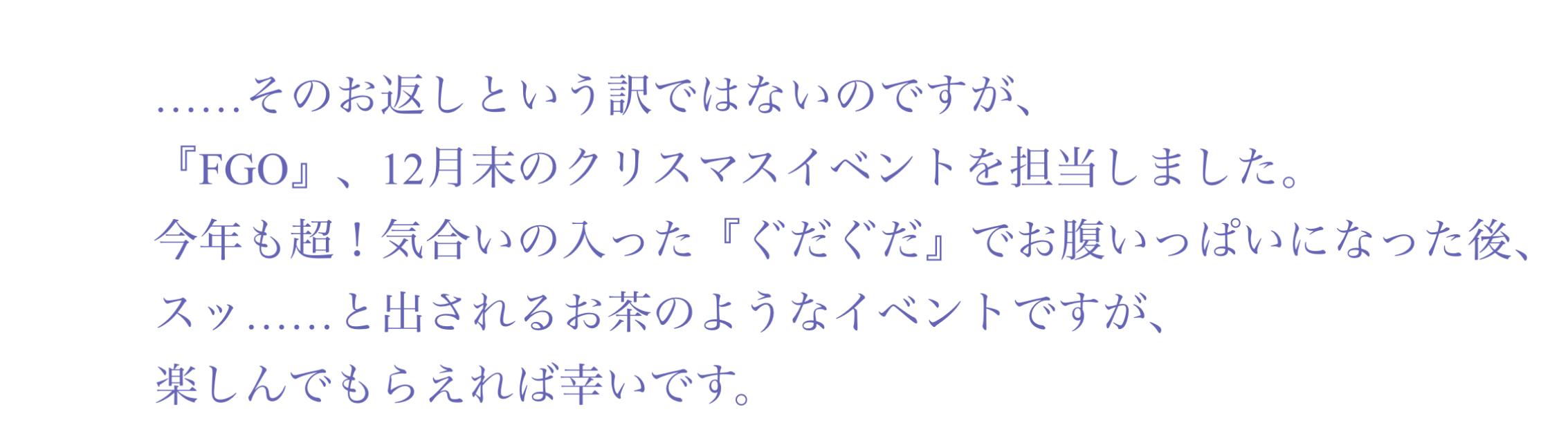 重すぎるよお腹いっぱいのところで出すお茶のような(ノリで軽くお出しされるがその実態はめちゃくちゃ重いものが込められた)イベント