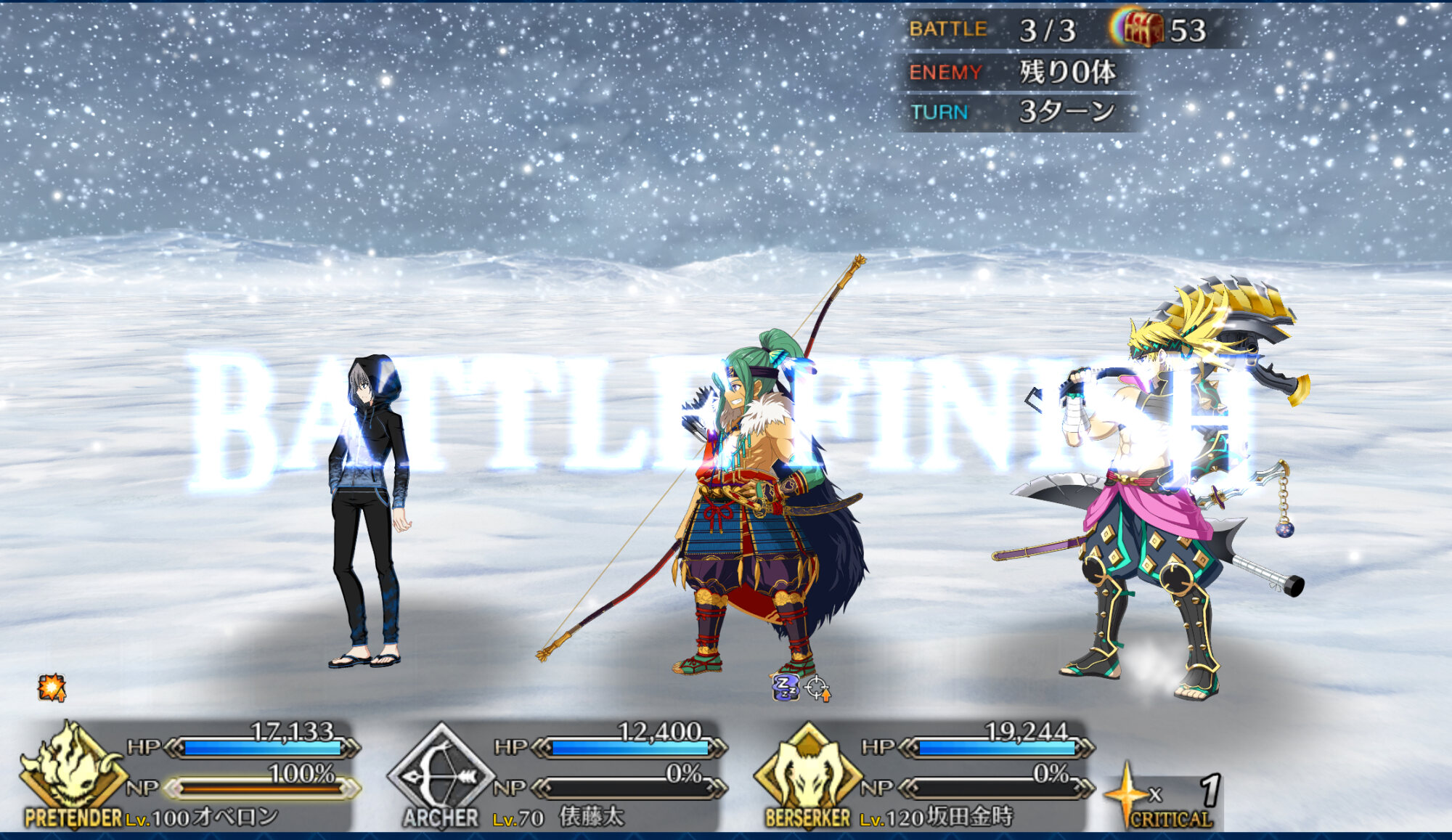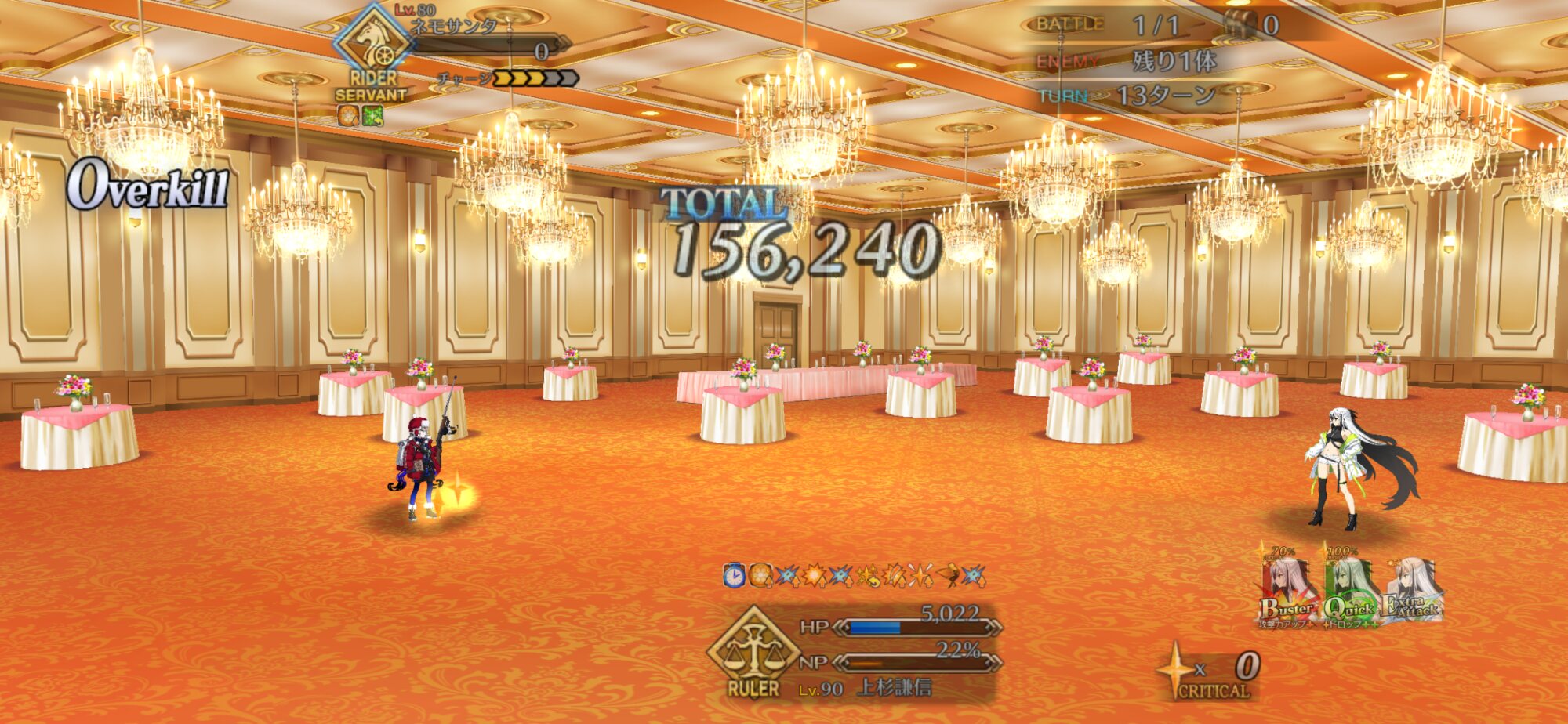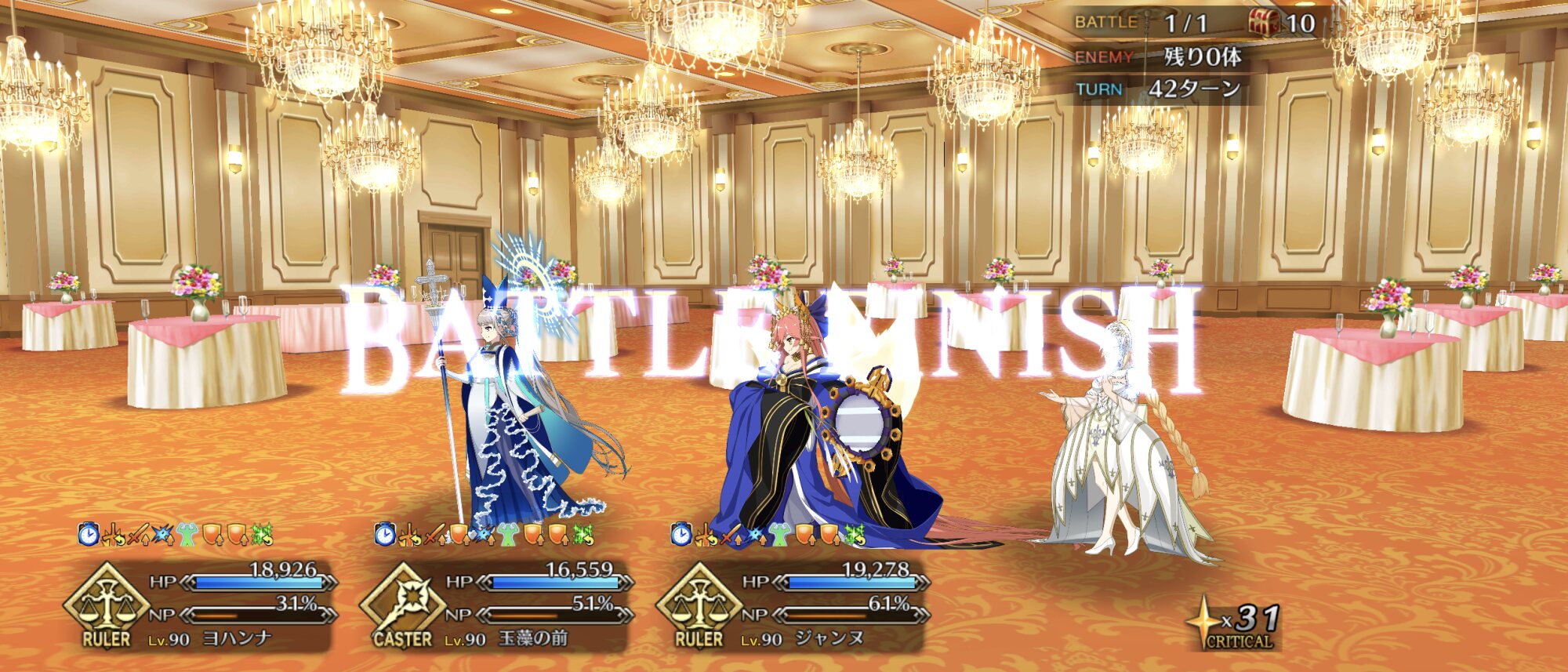 ガッツが面倒だったもので……。90++のアタッカーに⭐︎5ネモ、バッファーに徐福ちゃんとオベロン起用してみたけど、バフ足りなくてネモの宝具3は欲しいかも