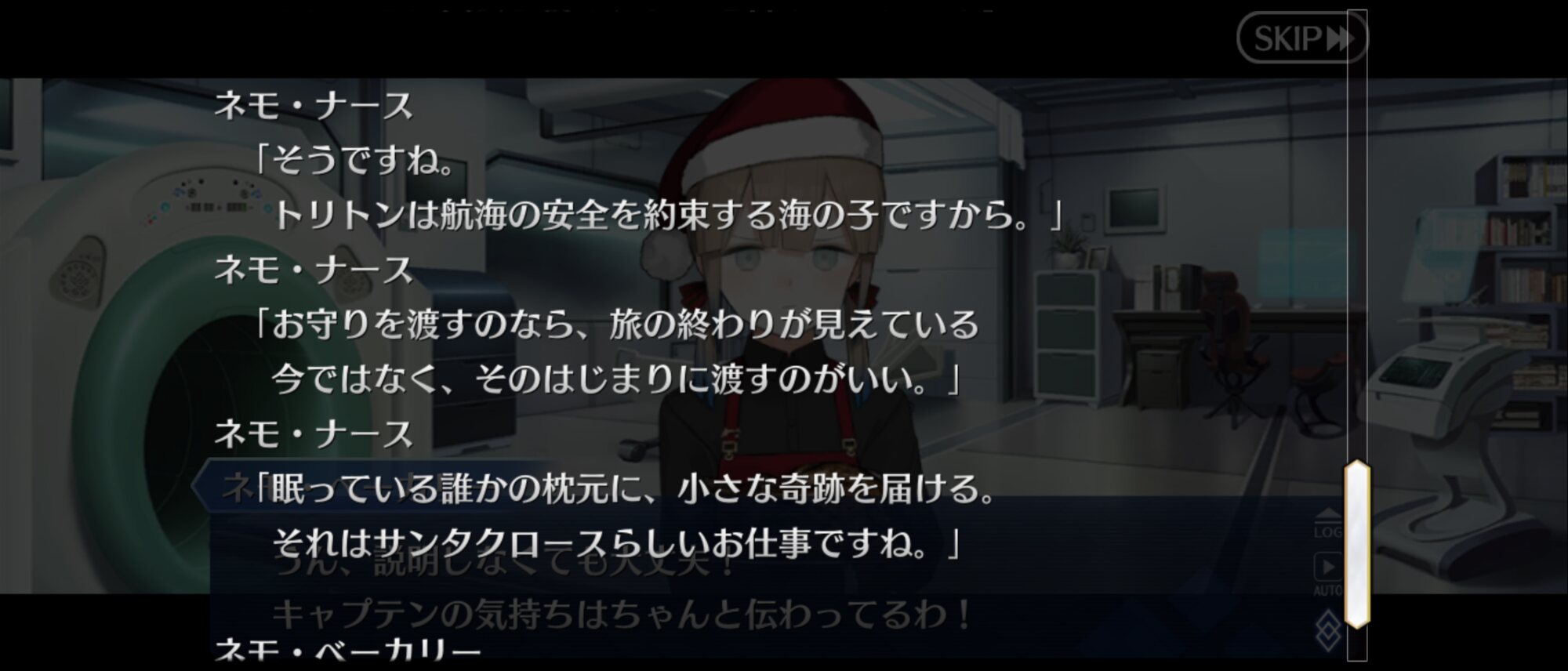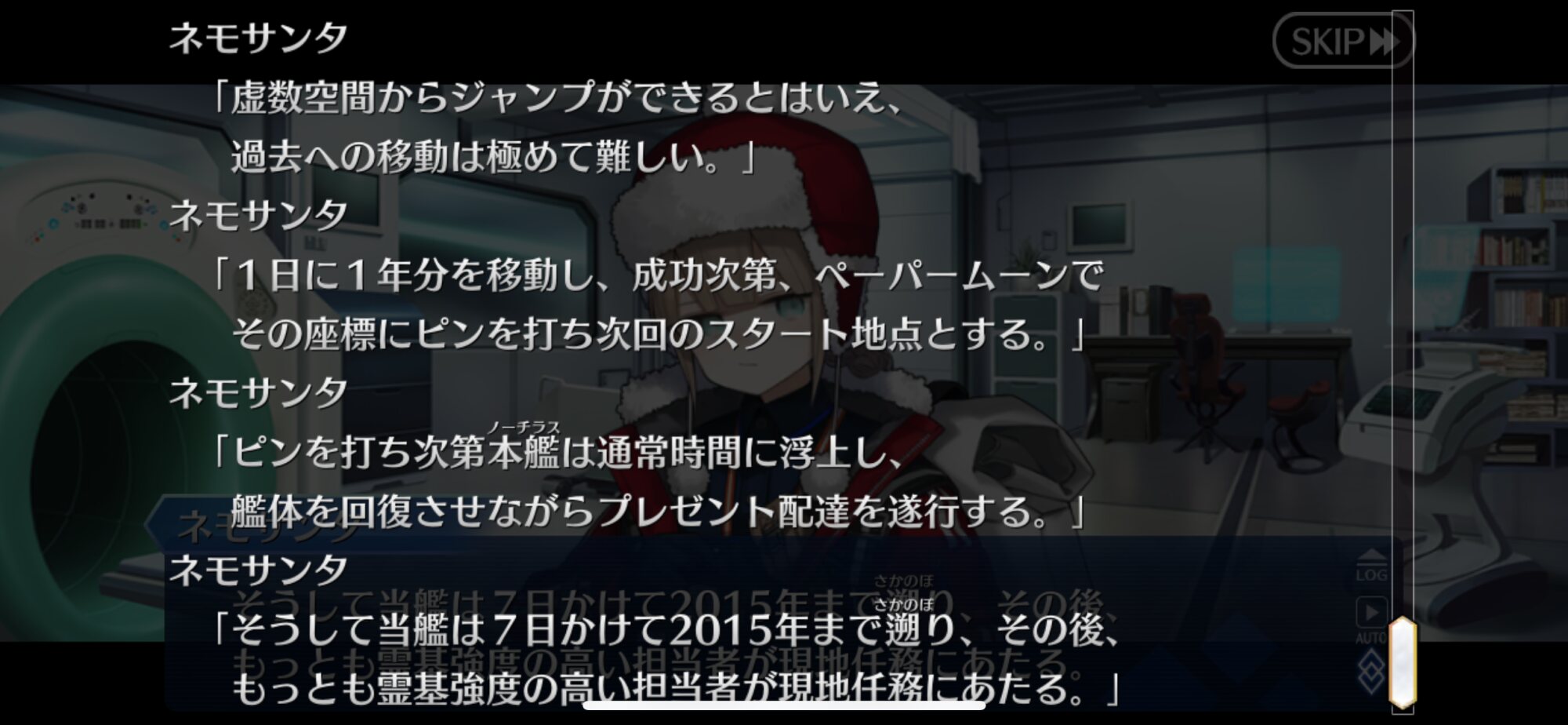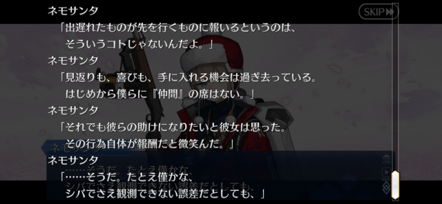 一応アドバイス。このシナリオ、正式加入したサンタネモのプロフィールの最後の一行までで完成だからね!