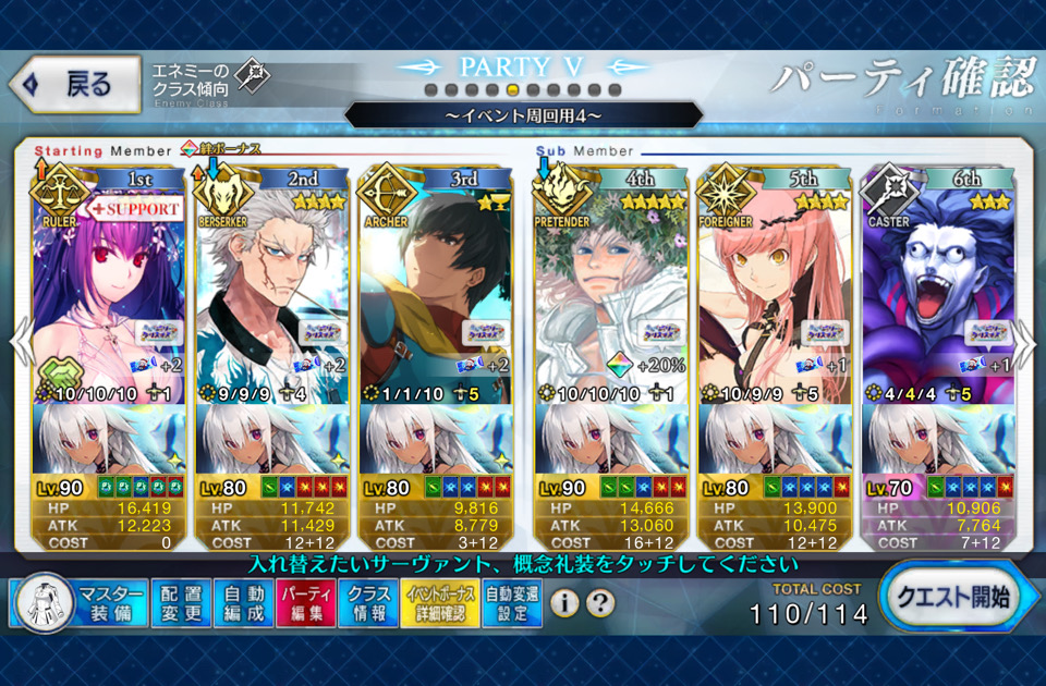 最悪宝具が飛んできて前衛が全滅しても、後衛で殴れば済む話だし終わり際になって2連続で礼装ドロップして笑う…