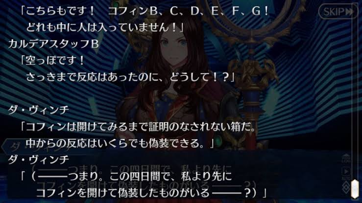 今回、「アナウンス」の正体が黒幕であるカルデアスなのだと判明したのだけど、デイビットの語りではダ・ヴィンチちゃんを優先して狙ったのは真相に真っ先に辿り着く可能性があったためなのだと