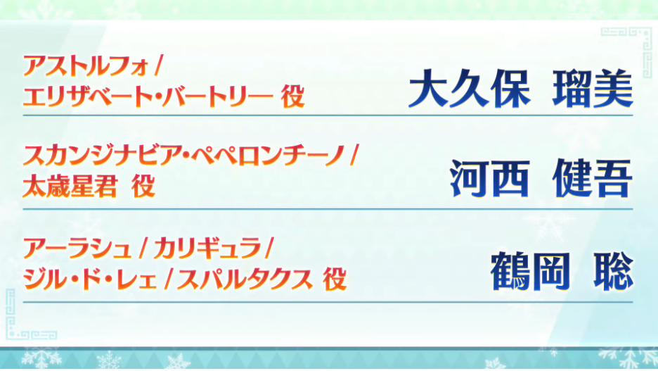 >例外はメリュジーヌで、TYPE-MOON世界で重要な立ち位置であること、自分がいままで扱ったことのない性格であることもあり、“透明感があり、プライド高く、人の心わかってなく、少女漫画チックなキラキラ感があって、それでいて凛々しい王子様ができて、寂しがり屋”といった要素をふまえて、最終的に高野さん(高野麻里佳さん)にいきあたりました。