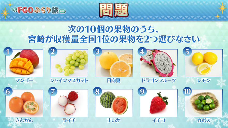単純に考えれば県知事が推してたマンゴーと地名的にそれっぽい日向夏…かな?