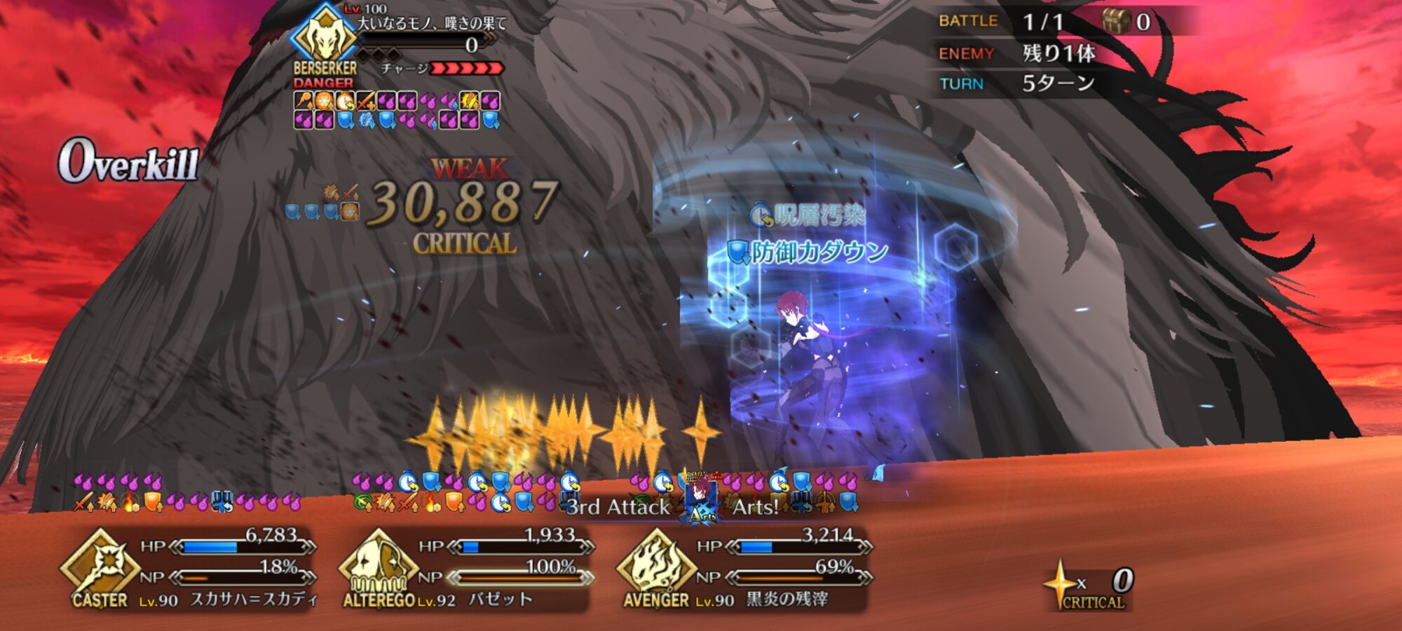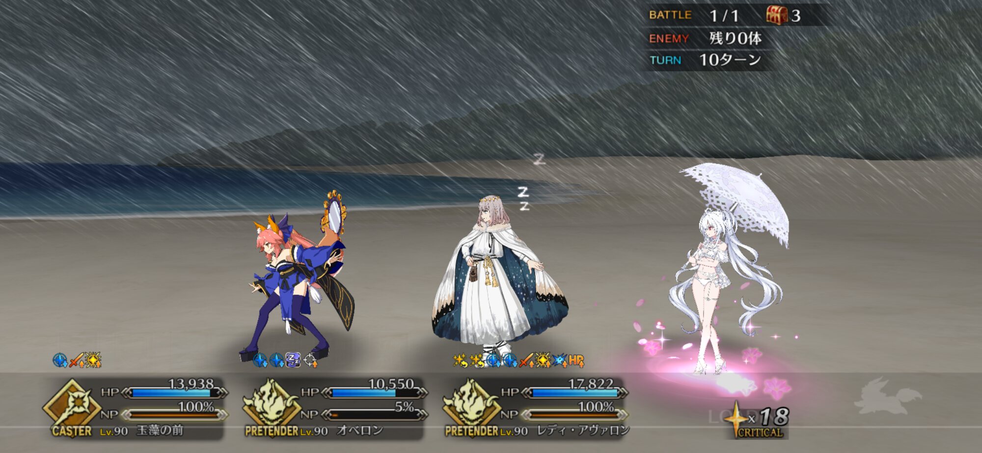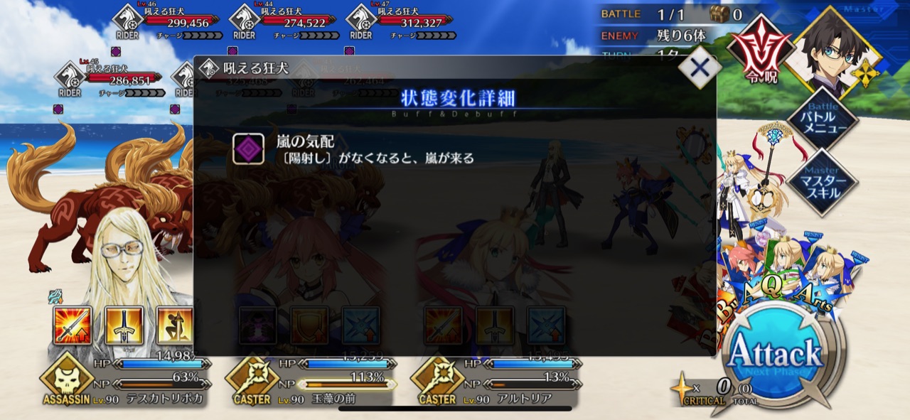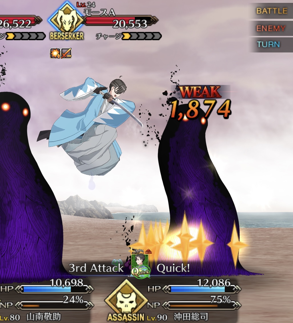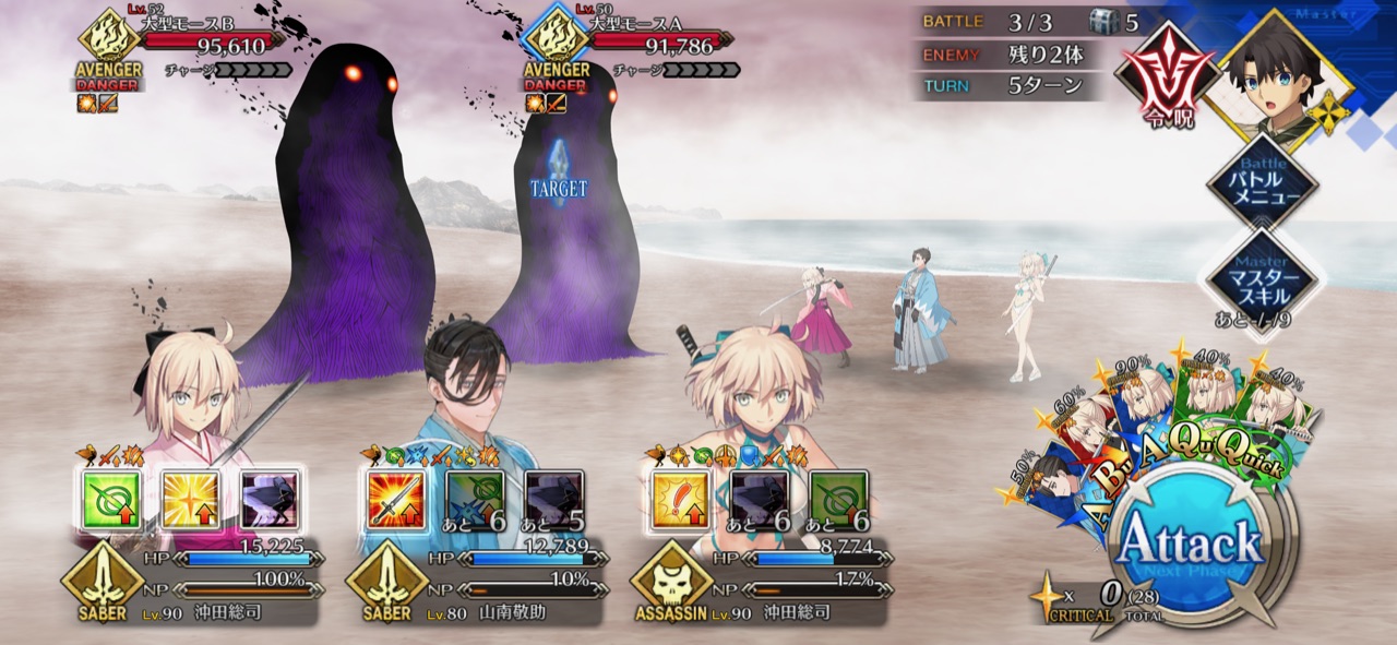 うちはいませんでしたので初見、リップと沖田オルタで行きましたが、リップの無敵貫通にNPチャージ持ちの沖田ちゃんの速攻で結構なんとかなって、まさかの初見突破でしたわ>>943