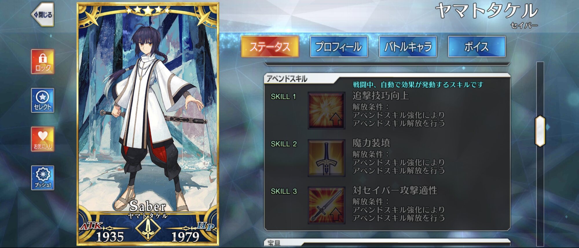 次はエネミー図鑑で属性見れるようにしてくれ!タケル、第三アペンドが対セイバー適正で嬉しい