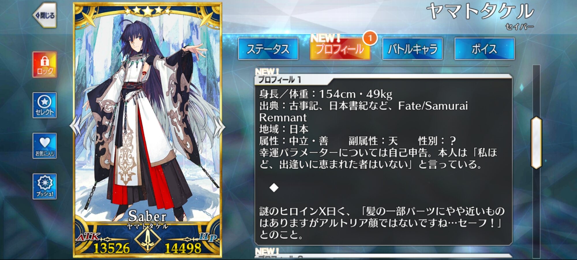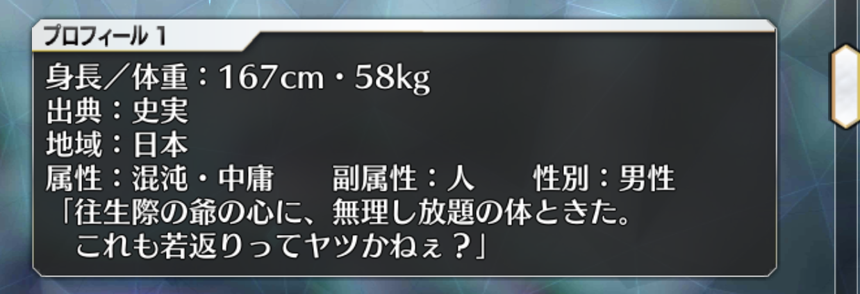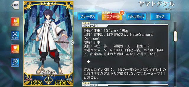 まぁ属性の後にまた属性って書いてあってもなんかあれだしね……予想はされてたけどやっぱり嬉しいねえヤマトタケル。