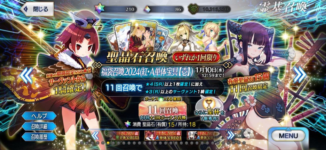 今年もよろしくお願いしますー!まあサムレム勢は鯖は正規の英霊だったから普通に来るのも納得だしね