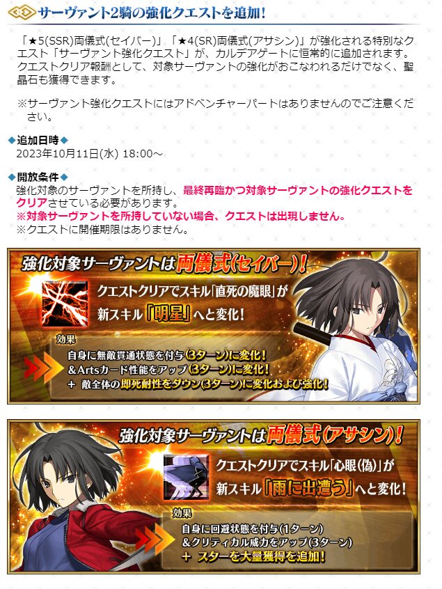 R18関連話題、よくてよ無しのガチャ結果、実装から二週間以内のシナリオ及び開催期間中のイベント内容、進行度依存の報酬、最終再臨や霊衣解放の画像や話題は専用スレにてお願いします。