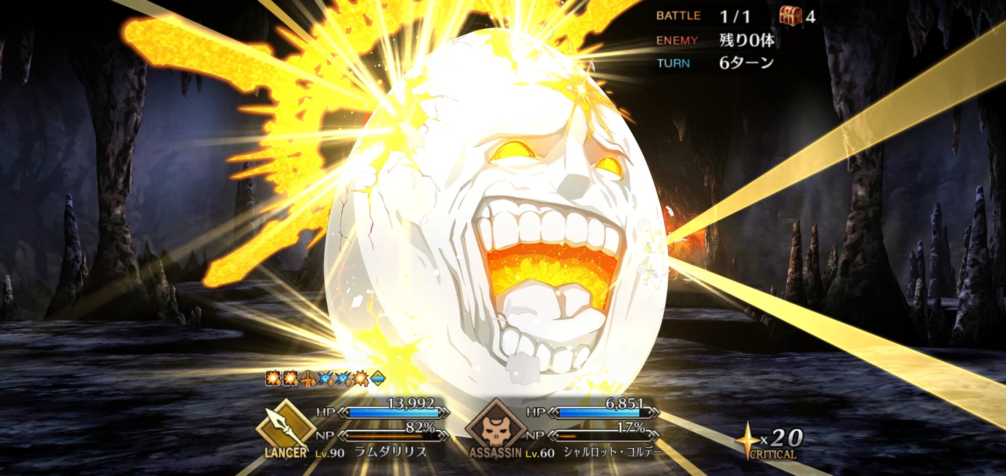おおっと~ここでプロテアの張り手!あぶな~~~~~い!かわした!かわした!ムリアン?すんでのところでかわしました!しかし周りの光景は一変し依然ピンチ!どうする!?今日の呼符でセイバー狙いたいので5よくてよプリーズ