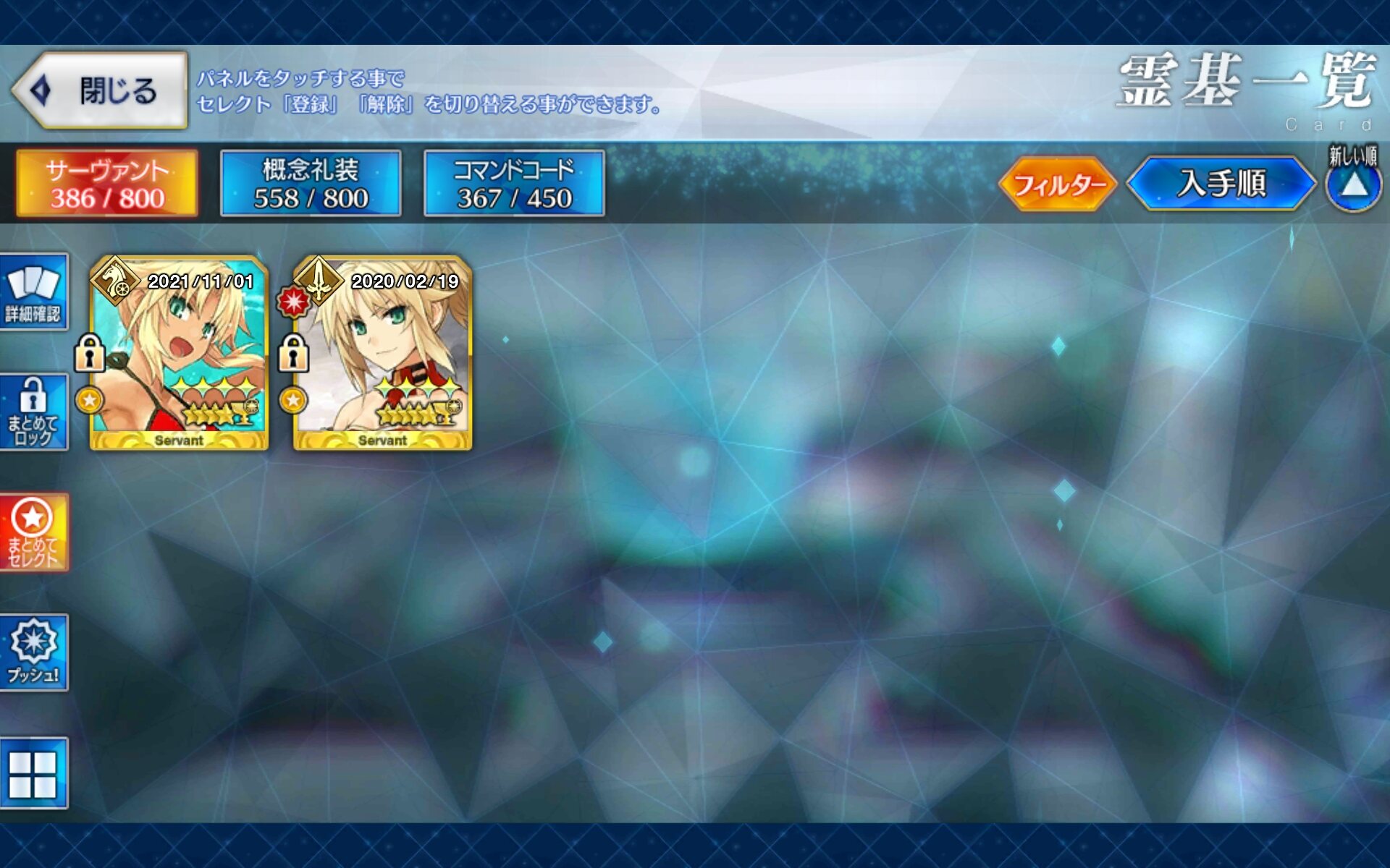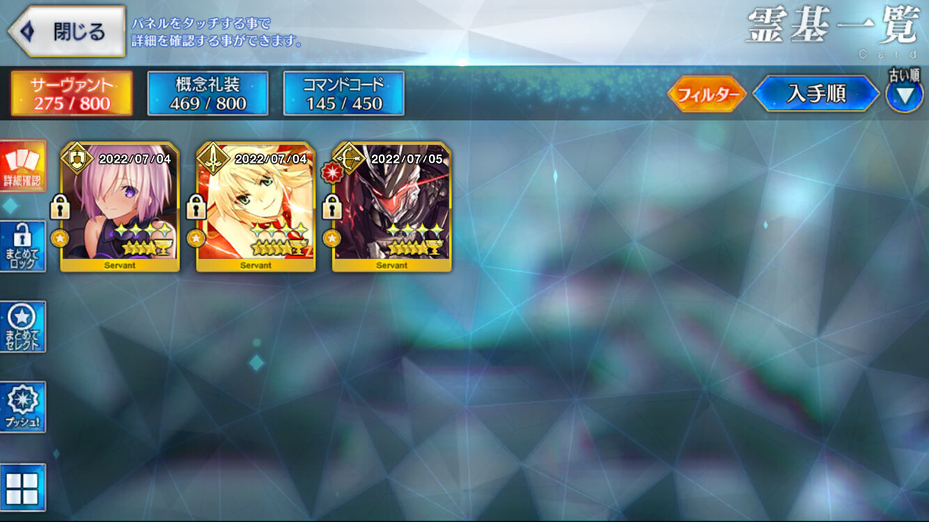 手持ち石を全て注ぎ込んで、なぎこさん宝具3 モーさん宝具1になったんじゃ…
