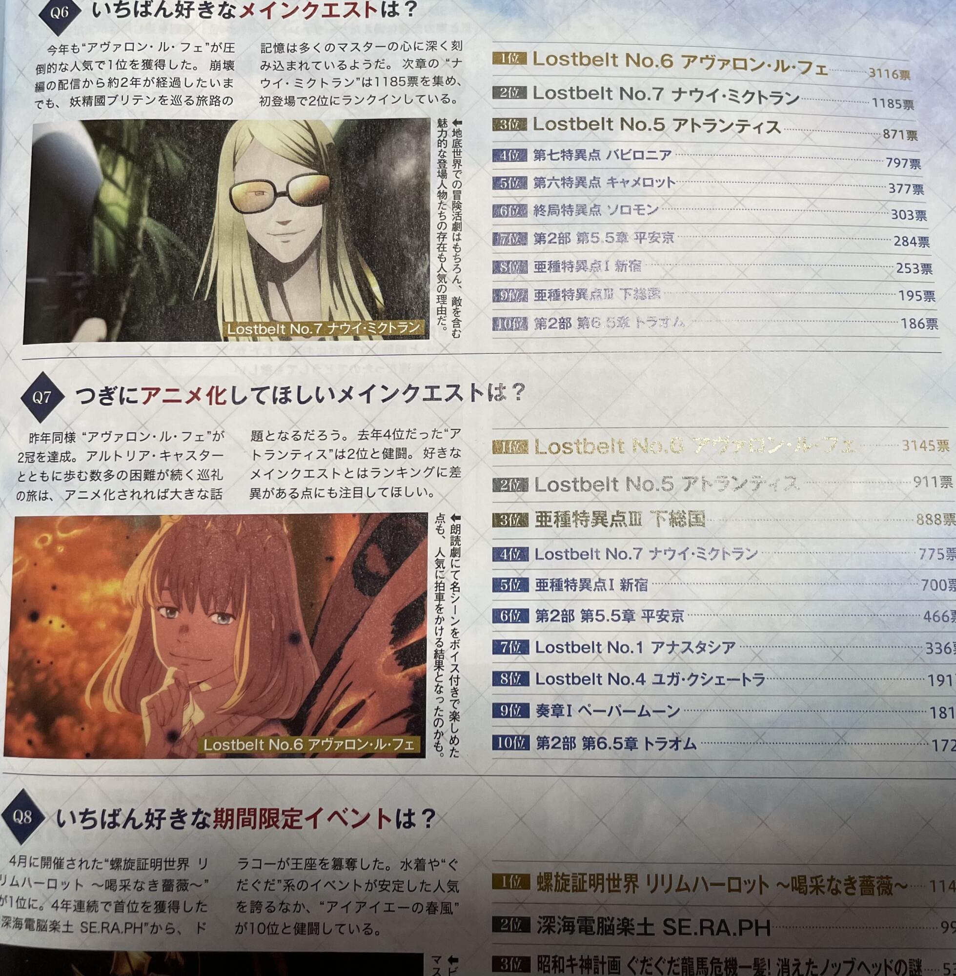 「いちばん好きなメインシナリオ」と「つぎにアニメ化してほしいメインクエスト」の順位が一致しないの面白いところだよなぁ…