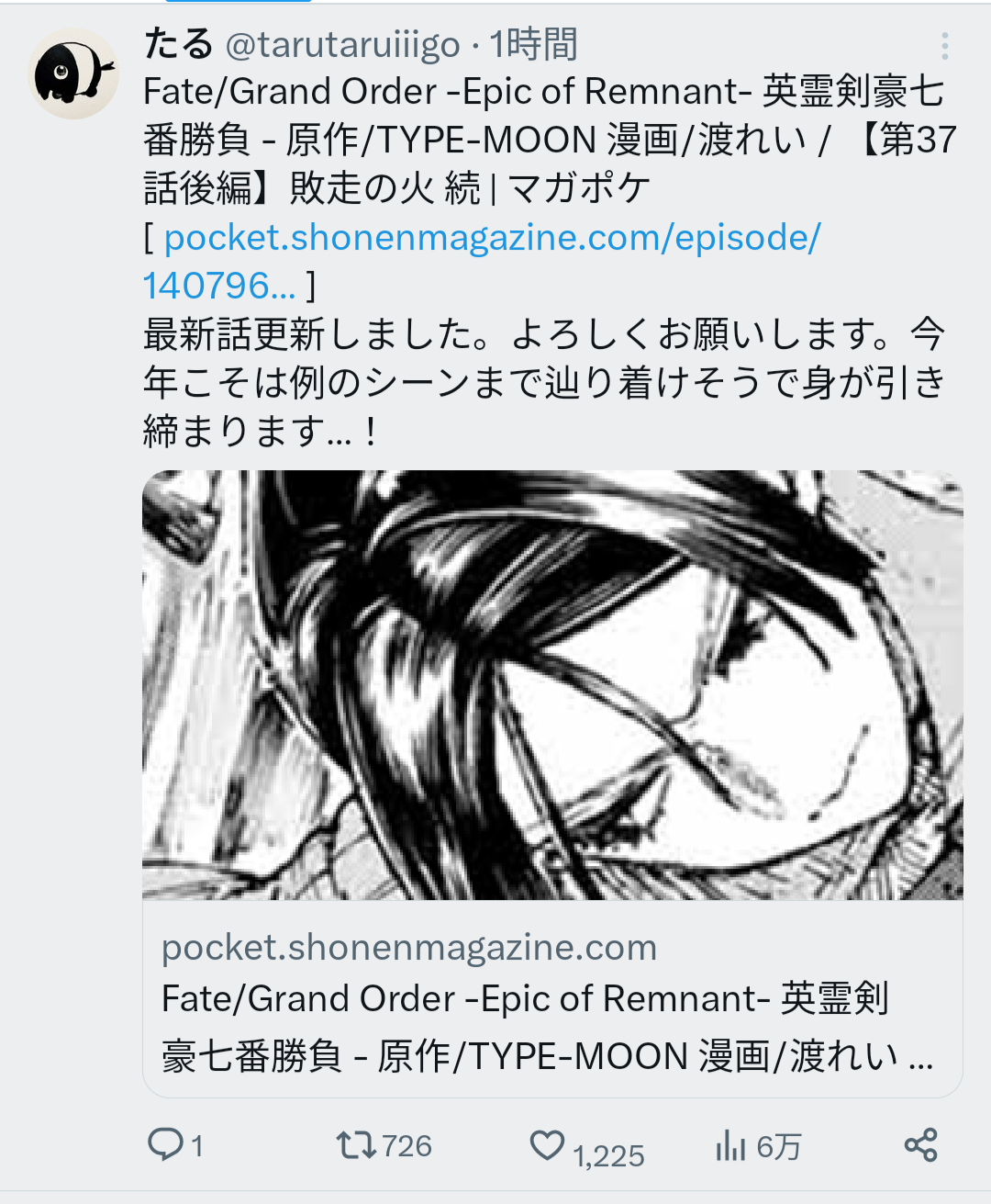 回して大人気アプリゲーム『FGO』外伝! 「Fate/Grand Order -Epic of Remnant- 英霊剣豪七番勝負/【第37話後編】敗走の火 続」を読んだよ! #マガポケ https://s.magazinepocket.com/ldg?t=677&e=390424