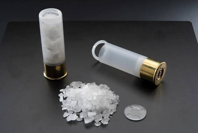 炸薬で発射しても原型残して飛んでいく程度には固くて、当たっても殺傷しないけど鎮圧できる程度には威力がある素材ってことで岩塩が選ばれてるのよね。