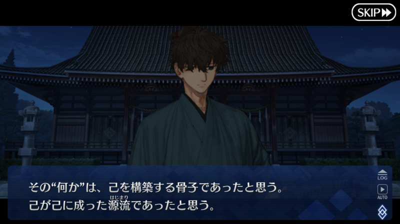 シナリオ進行とともにマイルーム会話が変わる形式だと思う。会話見ても明らかに感情語メインで「具体的にどう思うか」とかは発してないし聖杯についても特に感想はないみたいになってるから記憶なしverで会話してるサムレムのopの歌詞の地の底があるけど、それが地獄(盈月の中)なら、マスターがそれぞれのルートの結果、収まっているのはわかる。その場合なんで鯖だけじゃないかは、欠陥品超えてだめでは?冬木よりひどくない?なんとなくでつくれるのは凄いが、危ないってことかな