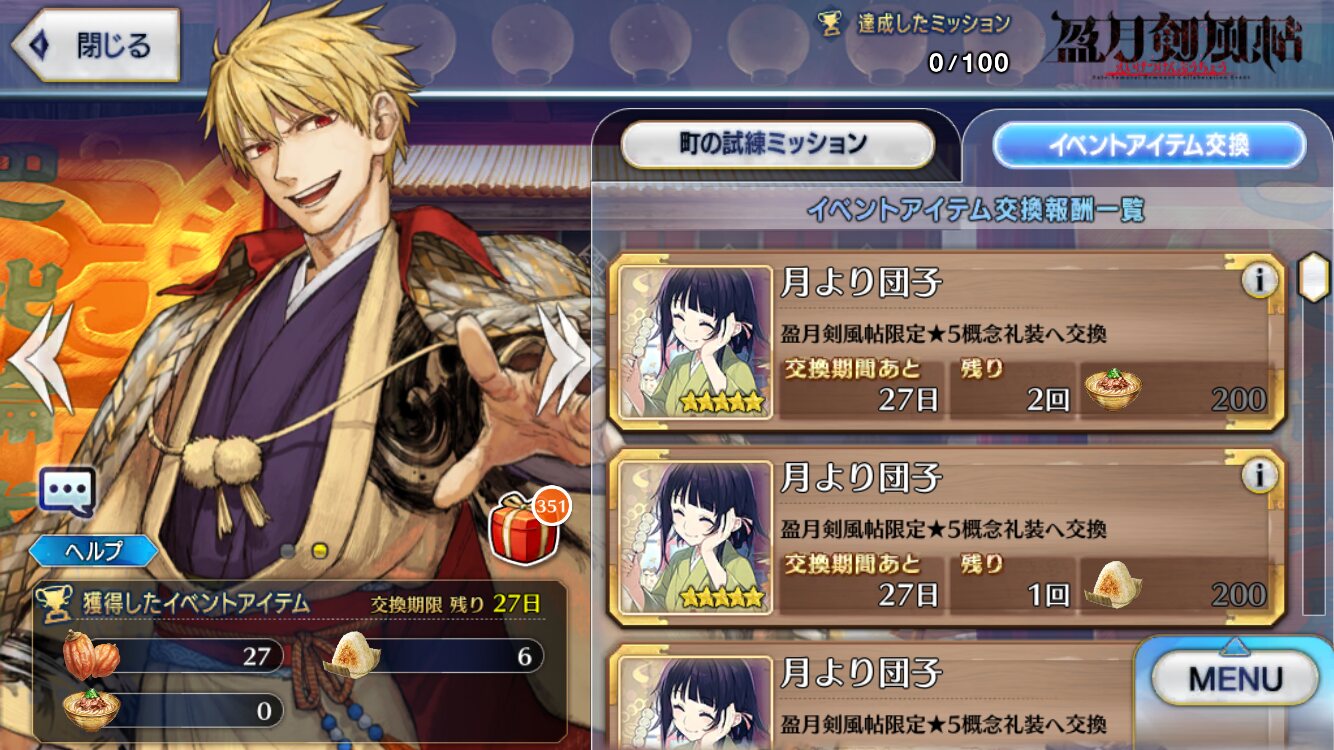 「盈月剣風帖」(Fate/Samurai Remnantコラボイベント)攻略・考察スレッド
