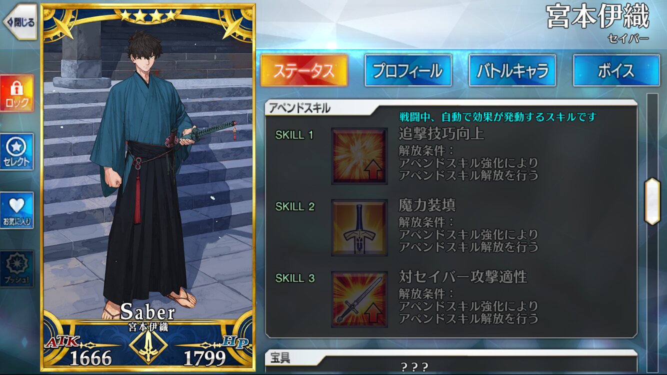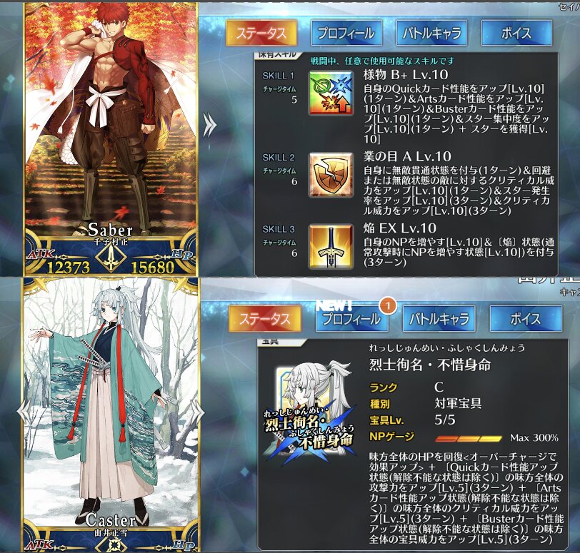 だからやった人はあの未実装のあやつなにやってんだって感じたりするし、セイバーくんの聖杯に関する反応で彼も悪趣味極まりないっていうぐらいだし今回の配布とPUは星4がマスター、星5がサーヴァントって揃っててマスターよりもサーヴァントの方が強いって感じにもなってて良い