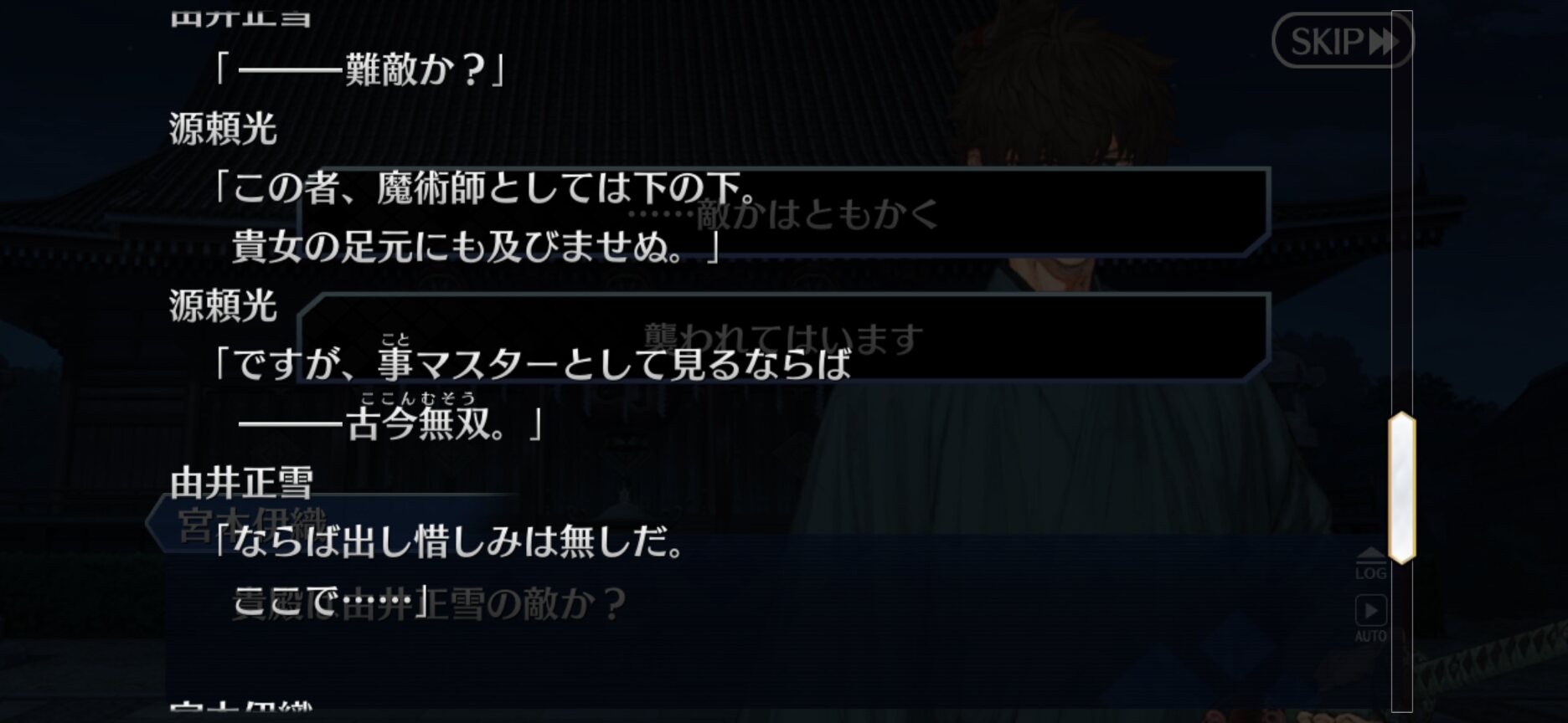小次郎と伊織の一騎打ちが見たい仮にキャスター陣営の代わりだとすると、褐色がワンチャン晴明本人の可能性ある?(玉藻曰く「骨格が日本人じゃない」、鬼一師匠が何故か爆笑)