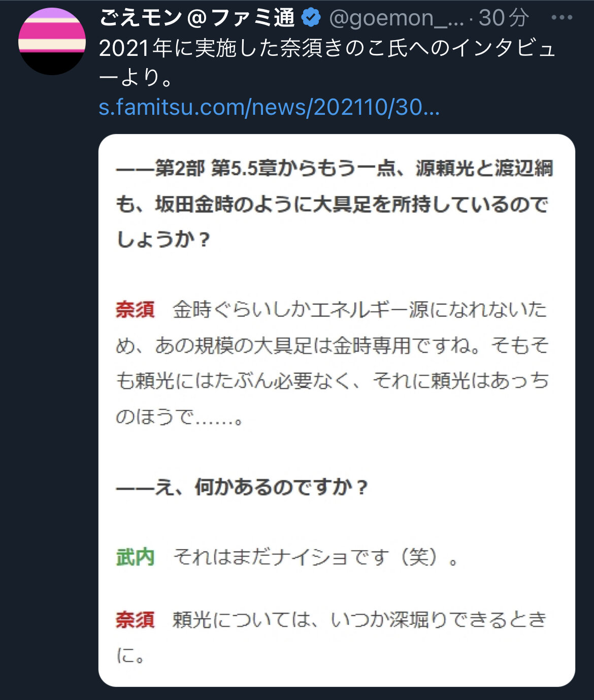 頼光さんと丑御前を同一視するのは尊厳破壊では?cmに小次郎とムネリンが映ってなかったな、からのサプライズで来るか