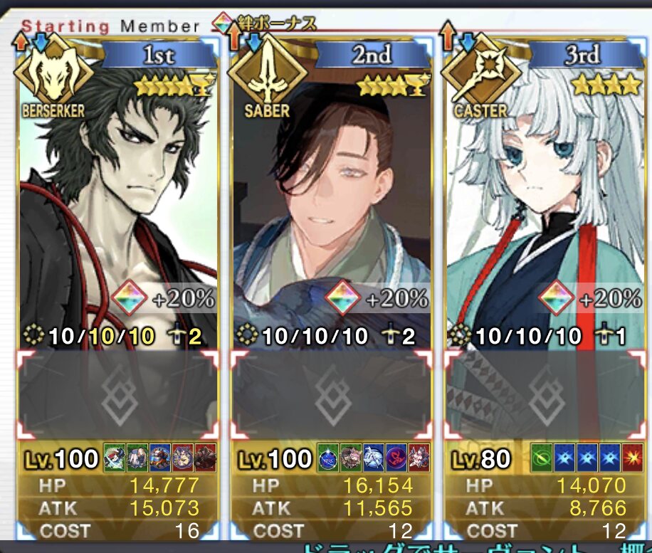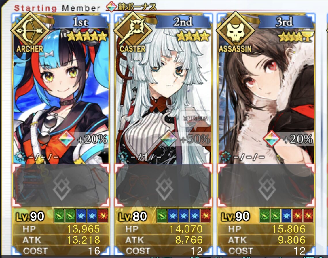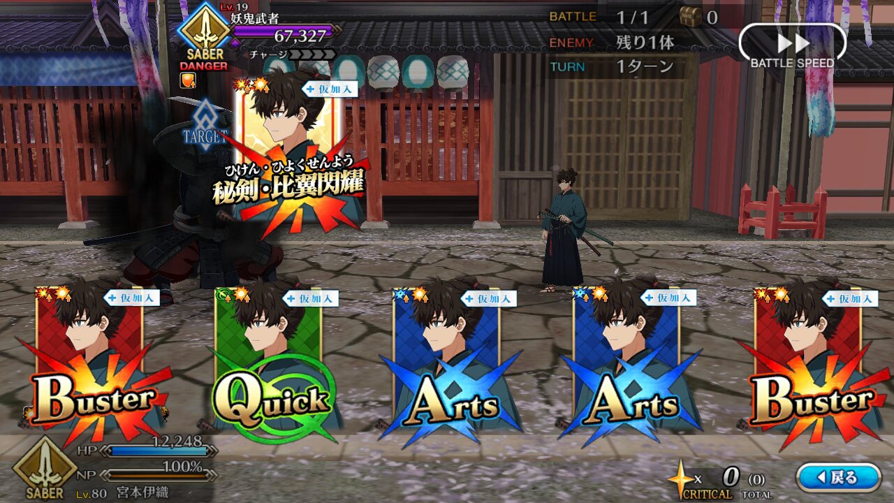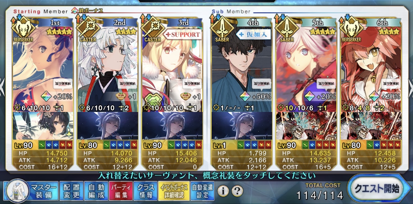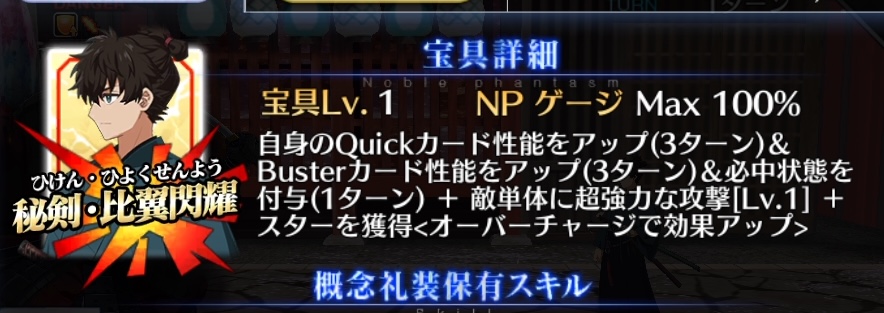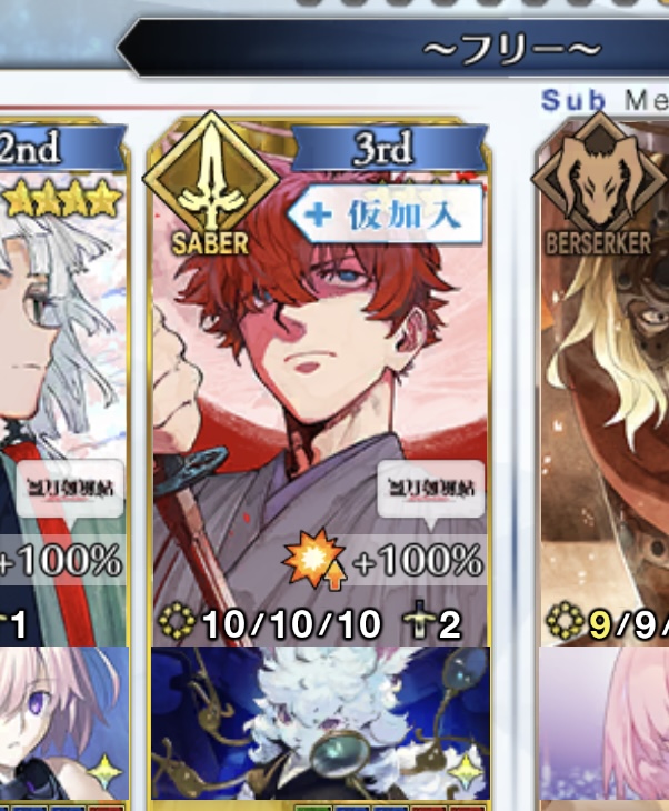 ごめん間違いだ…土方さんバスター横バフのみだった……クイックじゃなくてスター発生率だった……もう無理切腹する……辞世の句読む……浮いている敵ミッションは現状だと登場数少ないからきついな