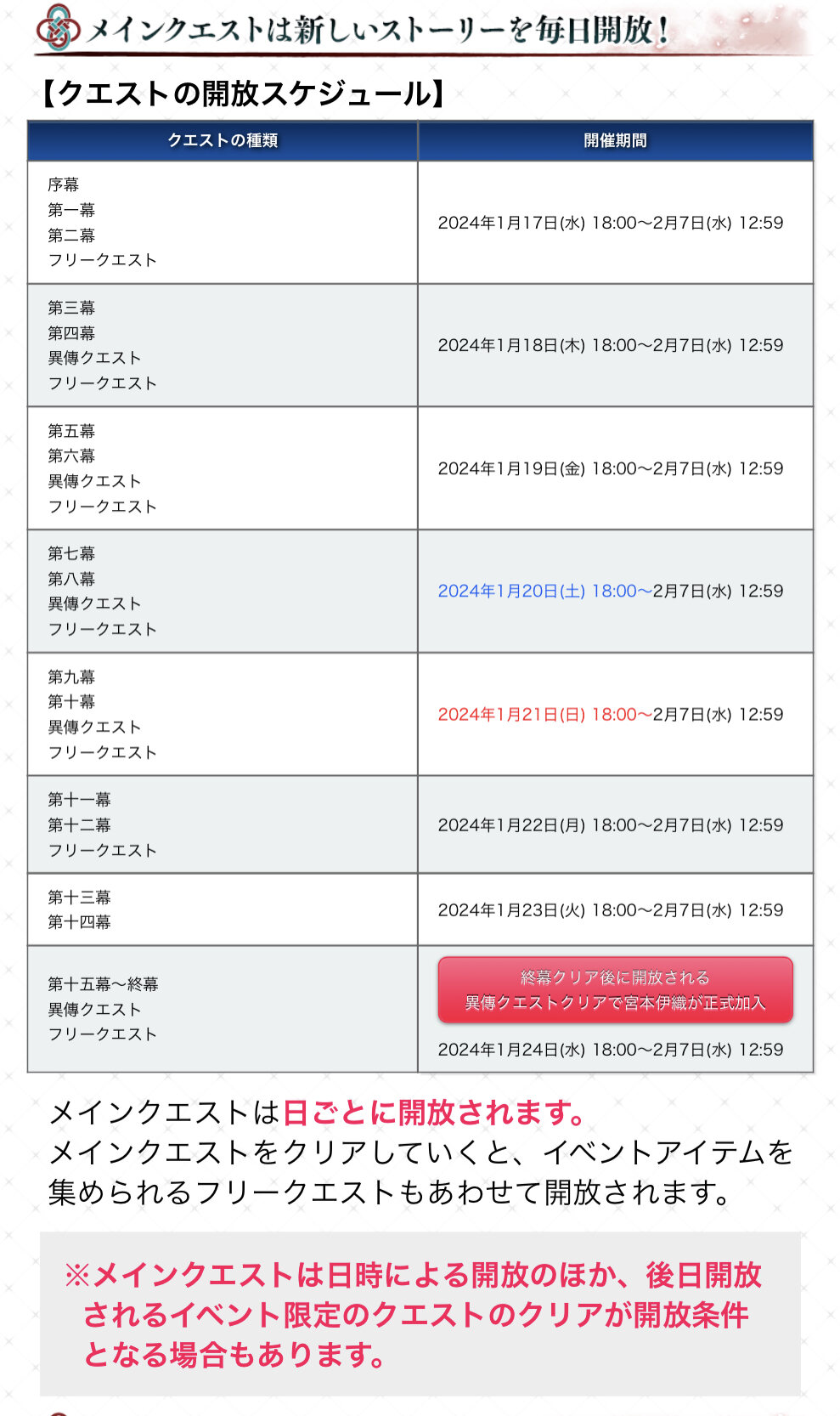 本イベントはメインクエスト第2部の内容に関するネタバレを一部含みます。メインクエスト第2部を未クリアでご参加される方につきましては、ネタバレを一部含むことをご了承の上、ご参加いただきますようお願いいたします。