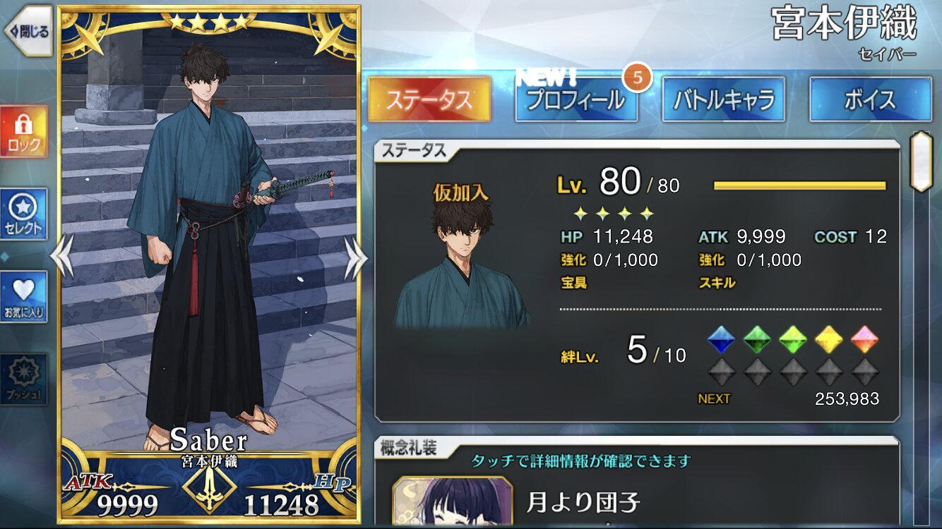 江戸文化のどこかに一度つけたら外せない猫のお面はないだろうか伊織くん、現状宝具は封印されたままだけど本人が殴りコロすスキル構成してるから普通にスタメンで二天の道突き進んでる