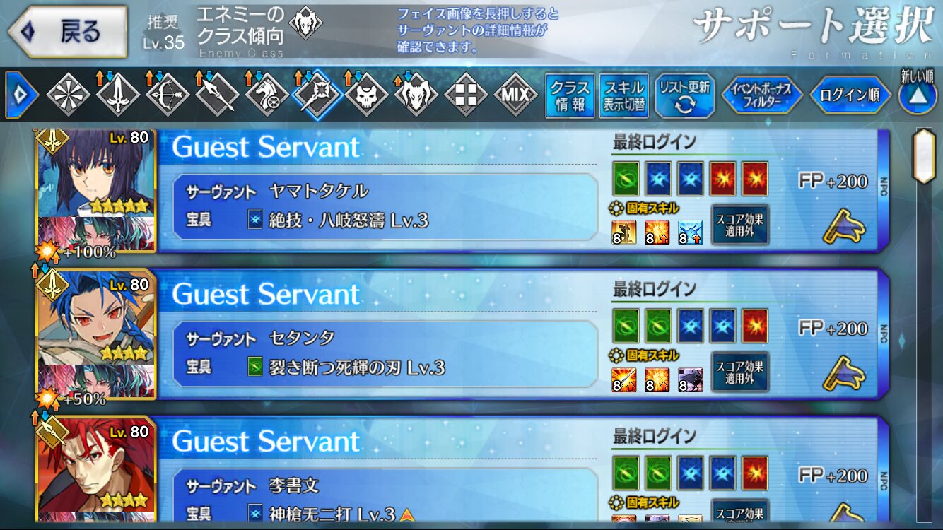 何でや!初手イベントでも戦わなかった上に、その後実装されたメインでも特定鯖のみのイベント戦闘しか戦えなかったらぶらぶはぁとのランサーさんおるやろ!?>>896