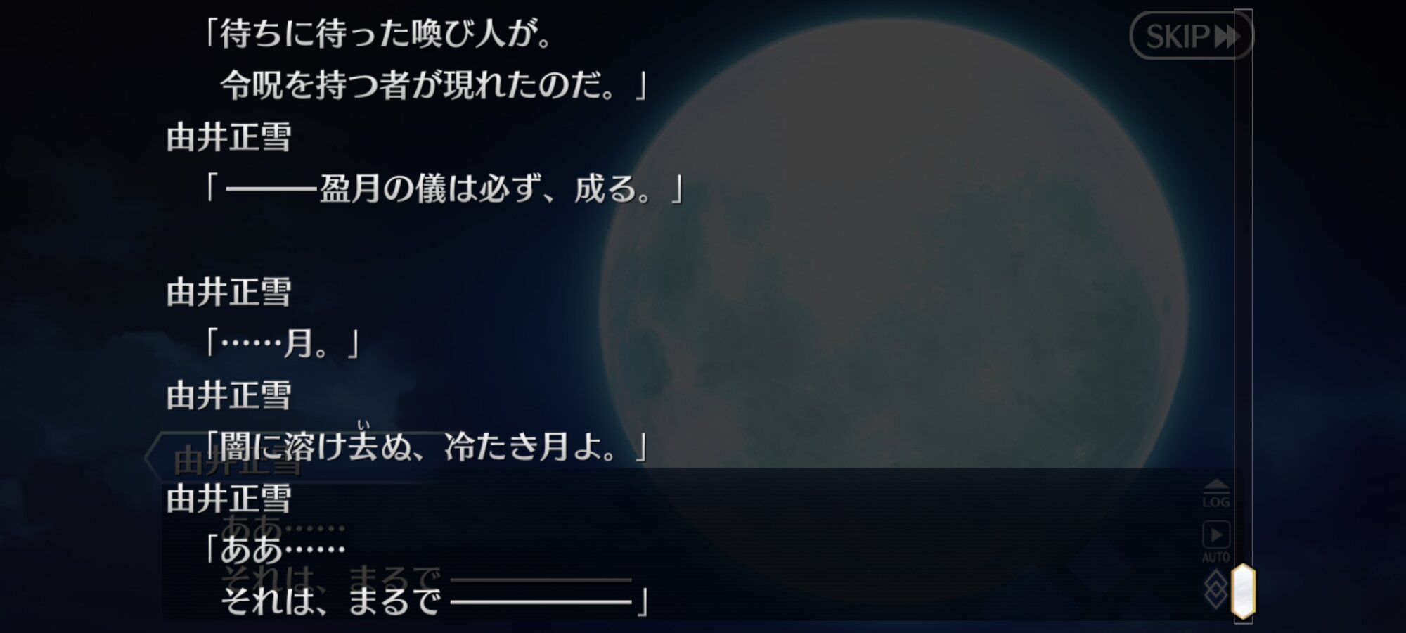 あれは大聖杯にランサーと繋がったことで取り込まれたダーニックがトゥリファスを再現して繰り返していたわけだけど、同じように盈月の中で繰り返されているとか感じなくもない