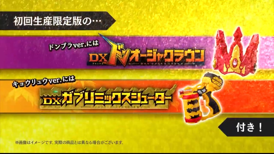まだ1つ前のドンブラの方はともかく、本編終わってだいぶ経ってからの後発作品の玩具の色変えて新しい玩具がこんだけ増えるのもマジで珍しいな……問題は尺大丈夫?