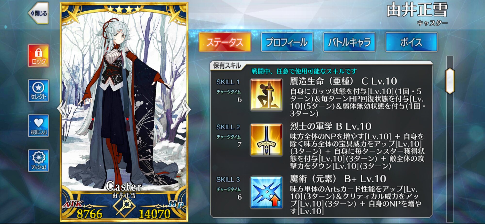 ※攻撃力アップ50%+宝具威力アップ20%は極地礼装レベル10の幻想強化越えです後一人ということは今は由井止雪先生だな