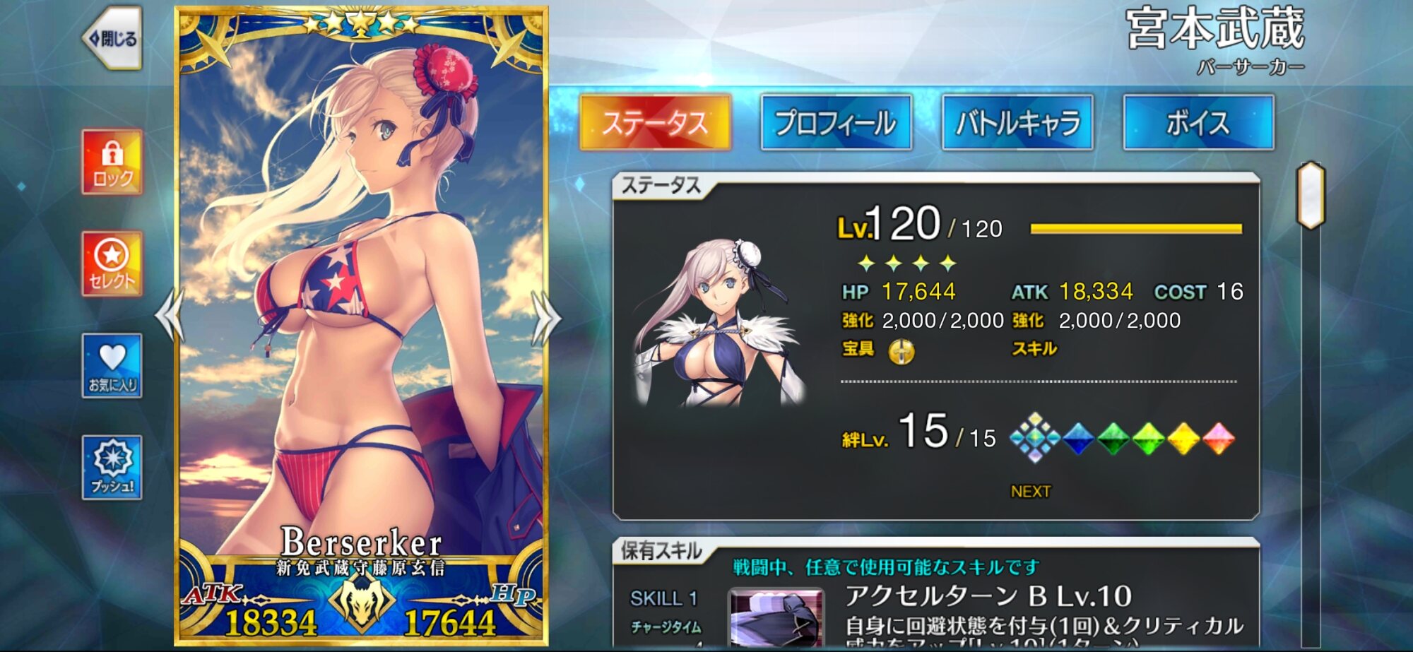 水着武蔵ちゃんと言えば最短4Tかつターン制限無し1回の便利回避スキルアクセルターンによりある程度の場持ちの良さに加えて第五盛によるヒット数二倍になったアーツ攻撃による抜群のNP回収力で宝具を連発できる強みの持ち主ですがそう! その宝具が! 強化されたんですねえ!