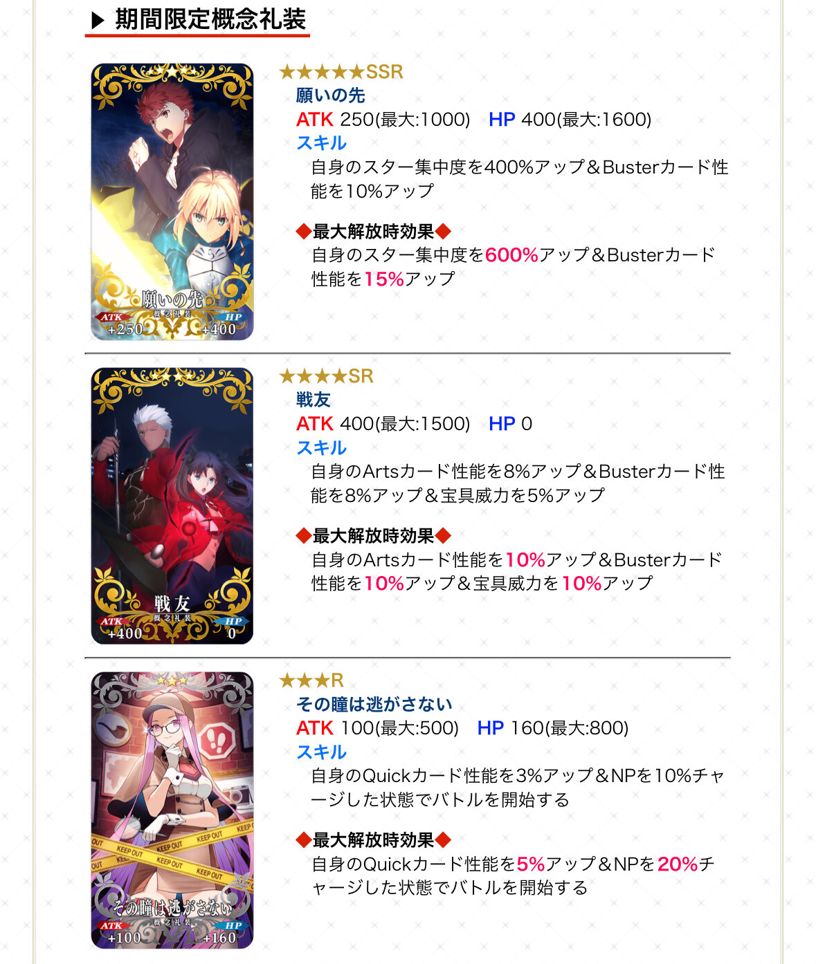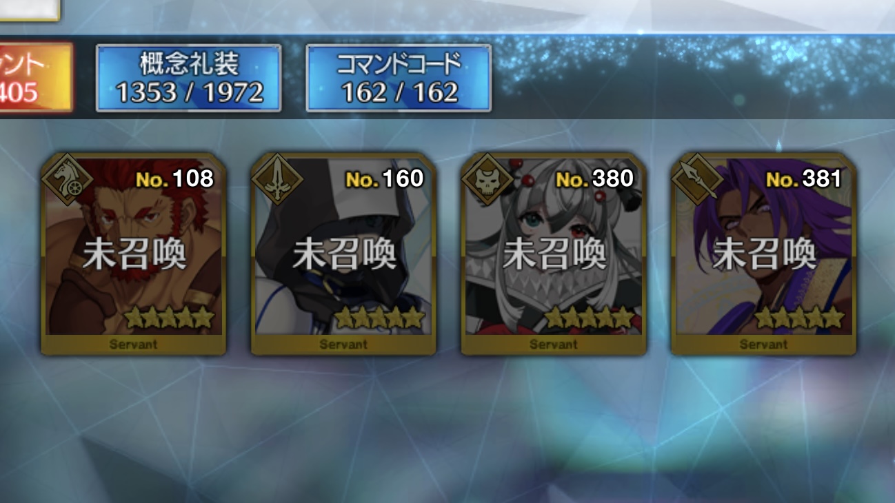 サーヴァントは今後も手に入る可能性はあるけど、礼装はこれだけの可能性が高いしね>>98