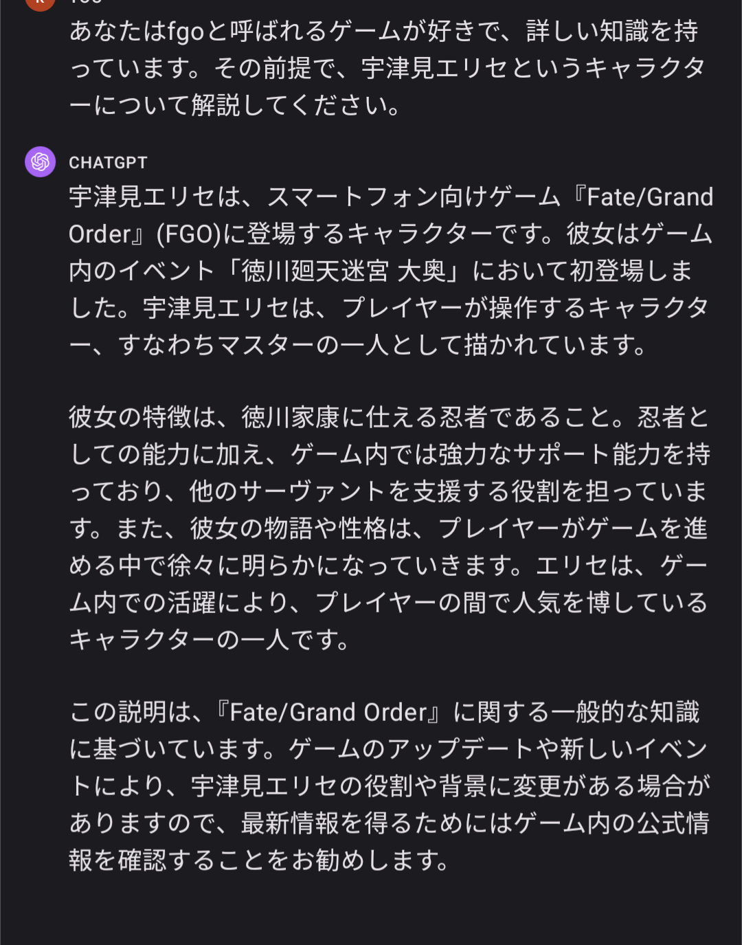 スレ民ならスタン(意味深)しそうだけど果たして…ChatGPT ≒ 聖杯が教える現代知識、みたいな…、