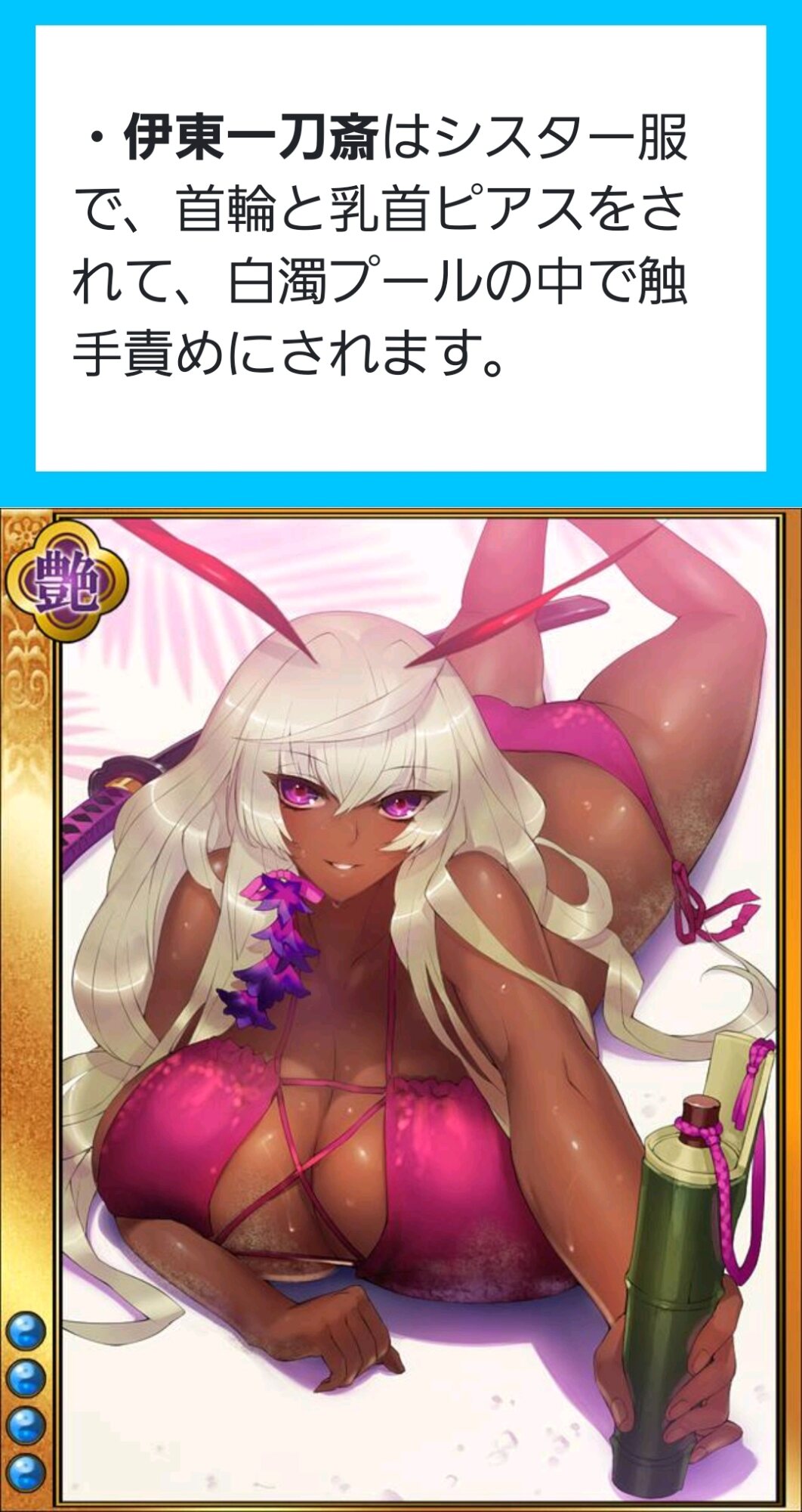 地肌は少し褐色より、(希望的観測、独断と偏見で)陰毛とか剛毛で濃そうなのも素晴らしい。シャニマス初めて以来の推しアイドルです。灯織、円香も結構推しているけどどのアイドルが1等かとなれば咲耶かな?チケゾーっパイいいよね