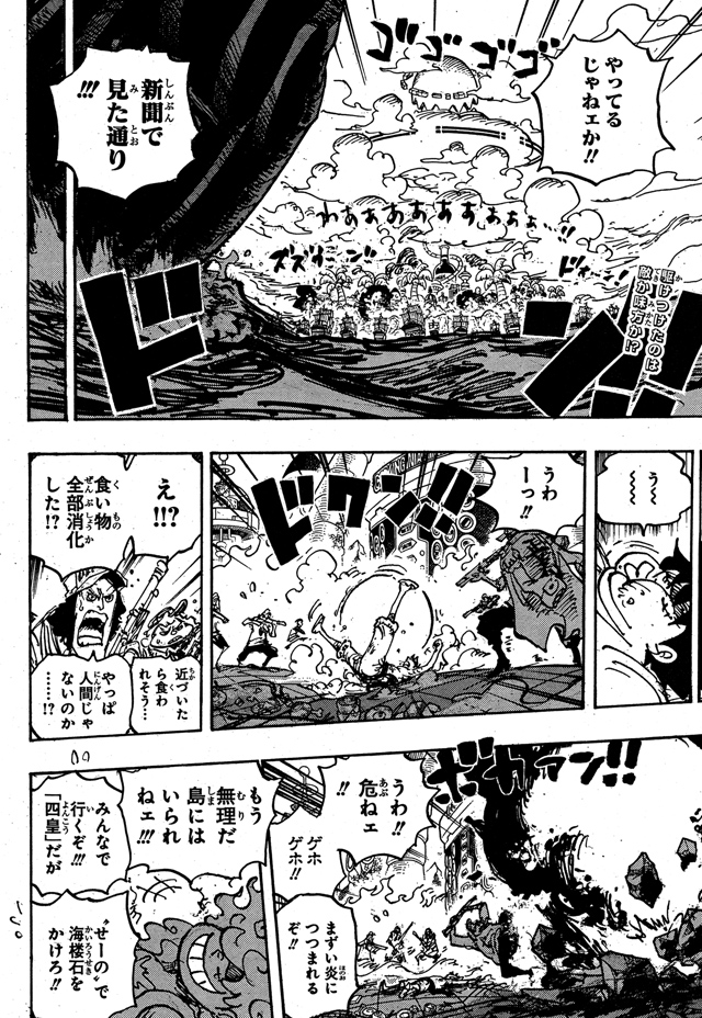 あいつらそもそも前置きとして「それぞれ個々に成長を遂げ」って言われてるのと、仮にサイ(八宝水軍)とレオ(トンタッタ族)がここで乱入してきたとしてもぶっちゃけ足枷というかサイもレオも弱いわけじゃないけどよくて中将達相手に善戦出来るくらいの実力だと思うから、現状で一番可能性が高いのは意味深に海賊旗が描かれた黒ひげ海賊団だと思うブルコス残党がデストロイで大暴れしてるの見るとジャンク屋連中そこまでなのでは?と思わなくも無い