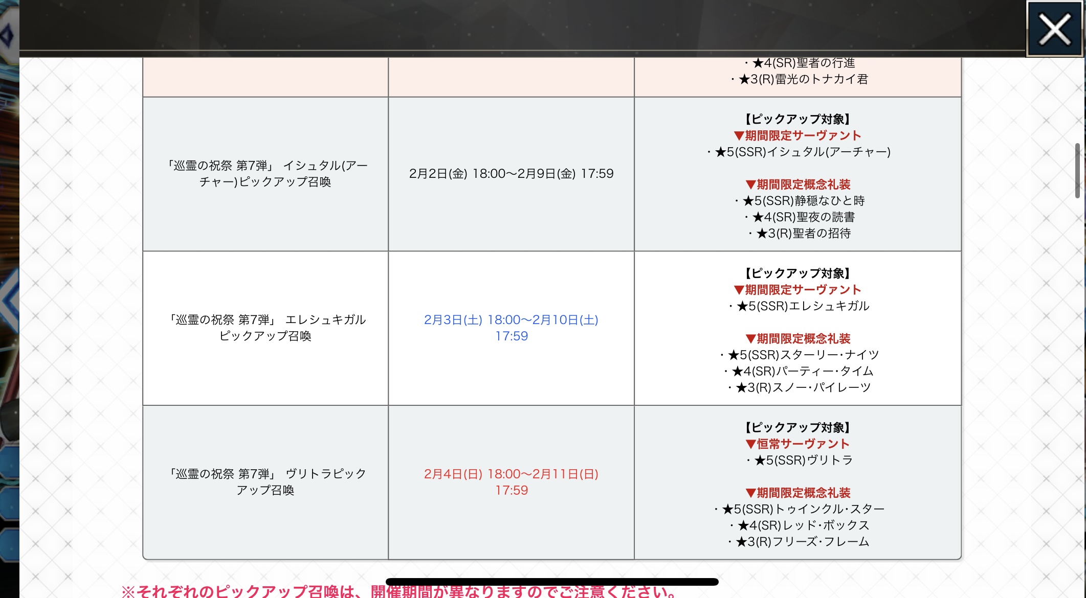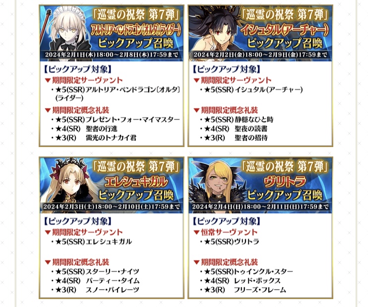「巡礼の祝祭 第7弾」が開催されましたね‼ 今回は4人のサンタさんが巡礼入り‼ 思わず「まだクリスマスだったかな?」と錯覚しそうになるラインナップですが、まあ2.1も逆から見れば1.2で12月みたいですしクリスマスみたいなものでしょう‼(?)