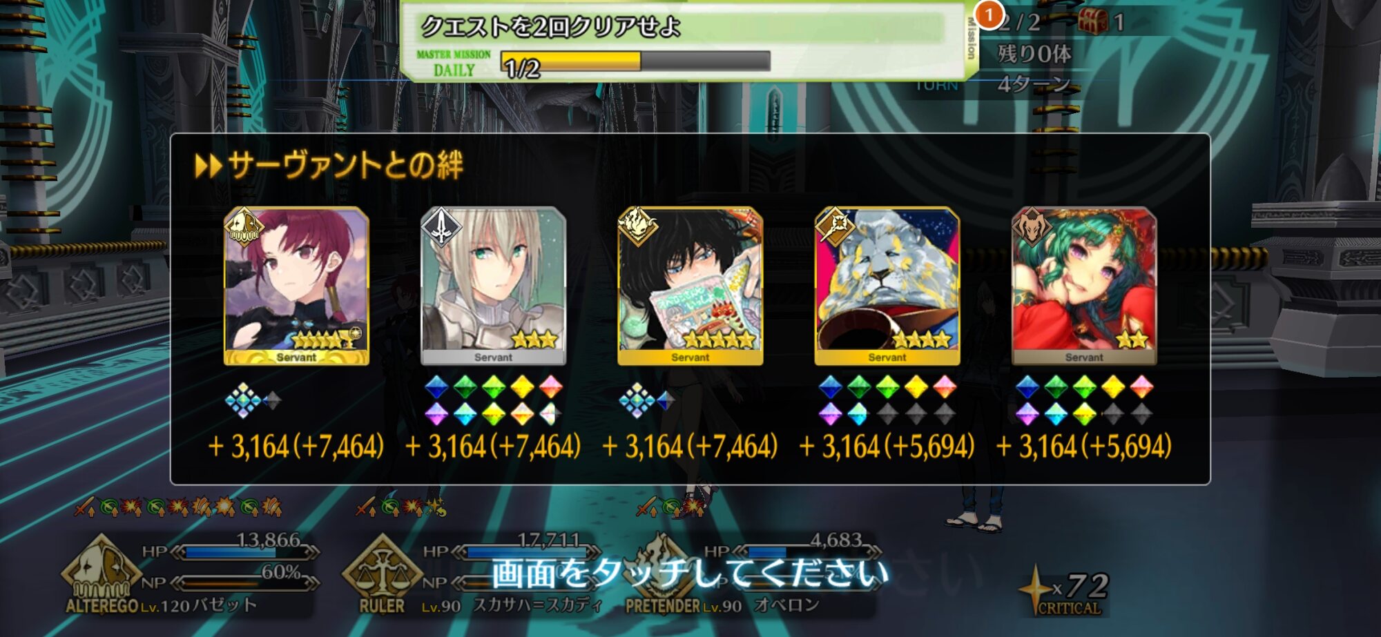 そして始めたばっかりだと実は聖杯の数も足りないというね120とか絆15とか大変だけど、達成したらそれはそれで、もう育てられない…ってなる不思議