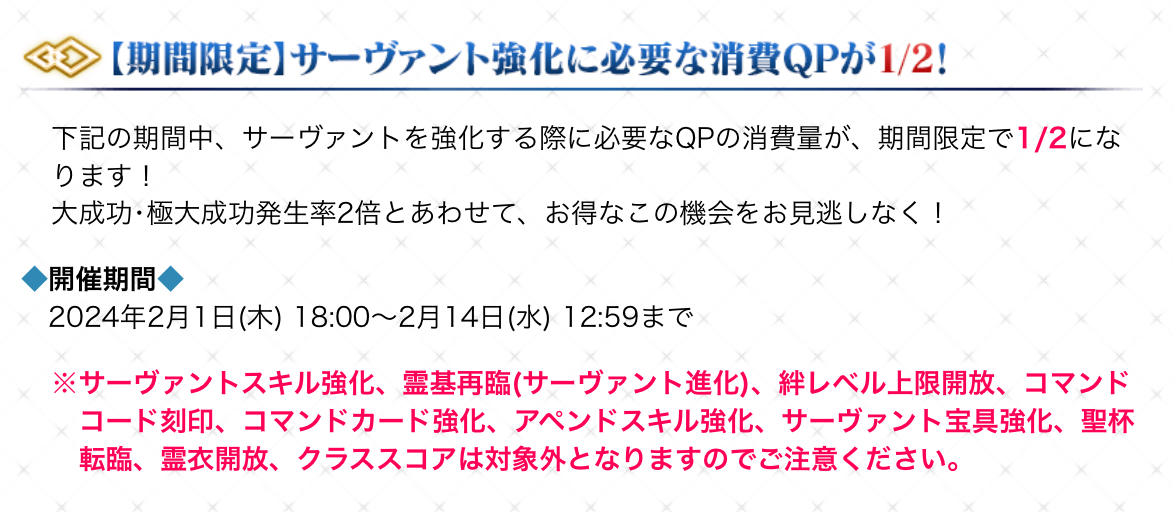 スキルレベル強化に使う素材半額!!QP半額