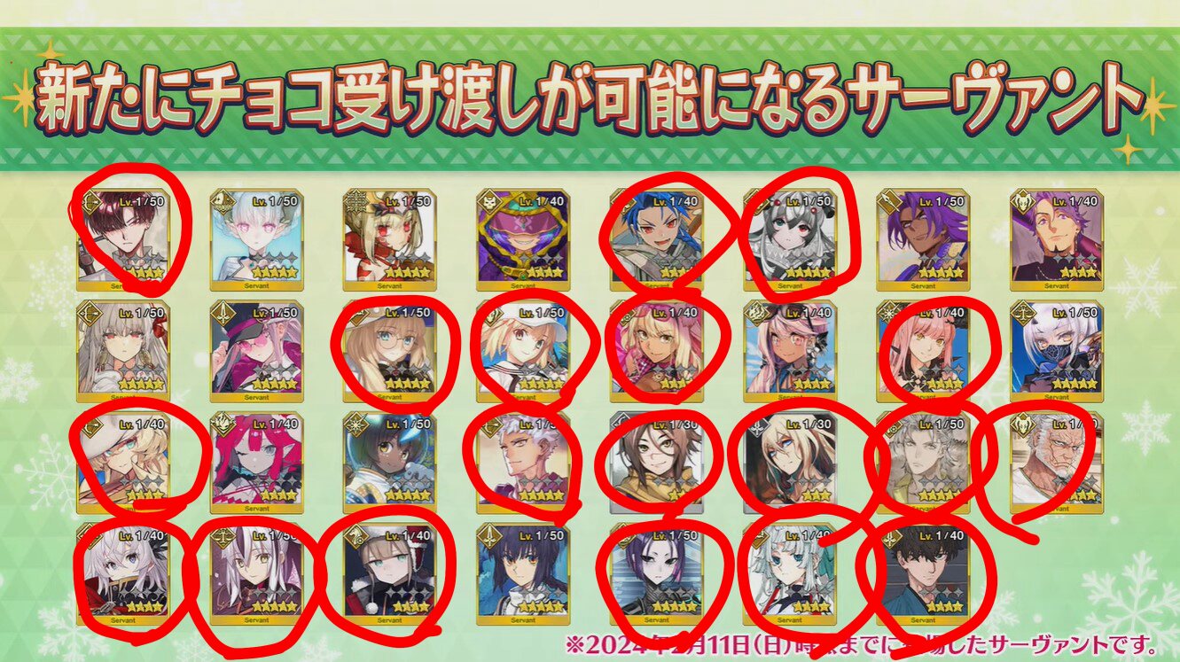 (しかしそこには身代わり人形のみが残されていた)おはようスレ民。メンテ前にサポ欄整理しとくといいよ。チョコ礼装残ってるならつけておけばスムーズにイベントできるからね。