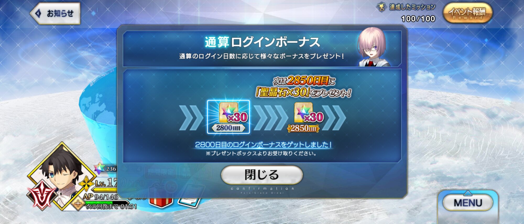 男性・女性で意味合い変えてくる辺りのガチ感wギリギリで行けた!!朕絆礼装ゲット!!