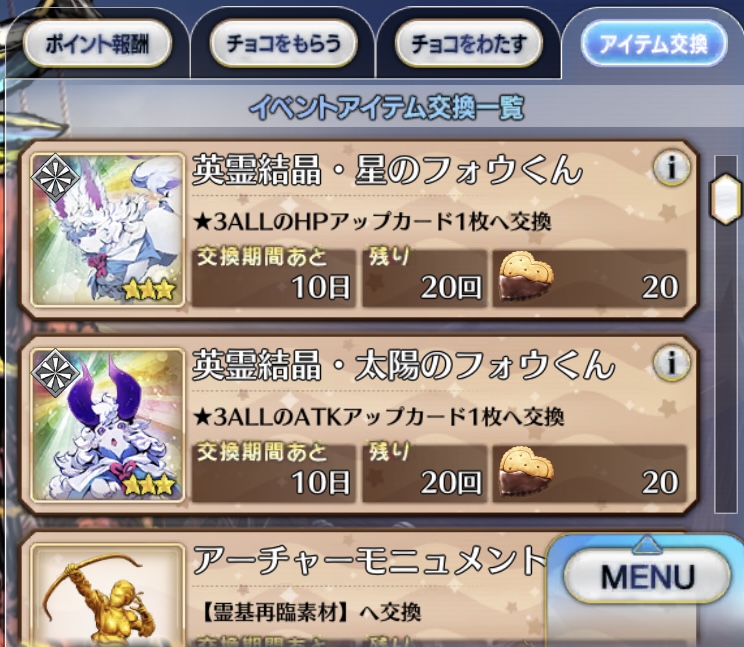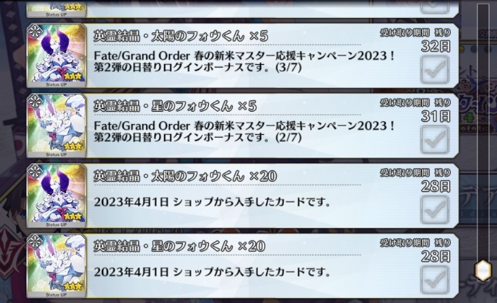 自前でなんとかなる種火と違って、金フォウと足跡の配布ペースがものすごく牛歩だから、それはほしいな。
